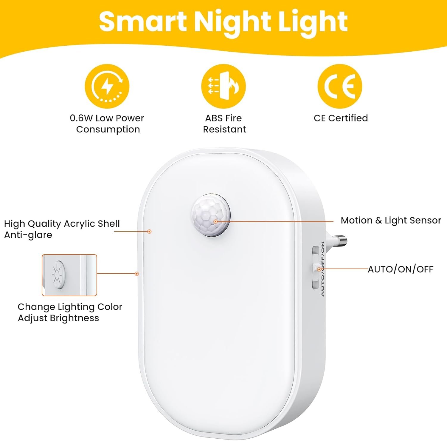 La luz nocturna LED se encarga completamente del sueño de su bebé. Es perfecto para habitaciones infantiles, dormitorios, armarios, armarios, baños, escaleras, sótanos y cualquier lugar donde quieras iluminar por la noche.