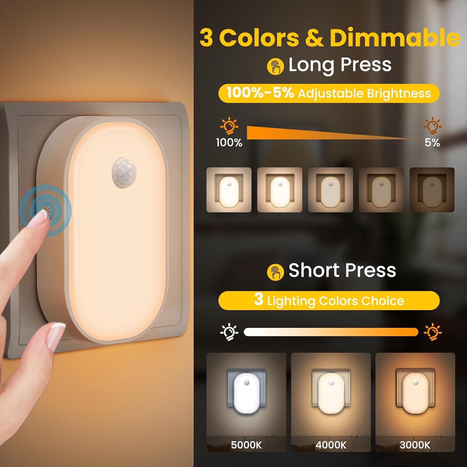 💡 【Amplia aplicación】 No más tropiezos a medianoche. El mejor compañero en la oscuridad. La luz nocturna enchufable es ideal para pasillos, escaleras, dormitorios, habitaciones infantiles, sótanos, salones, baños, mesitas de noche y cocina, haciendo su vida más cómoda.