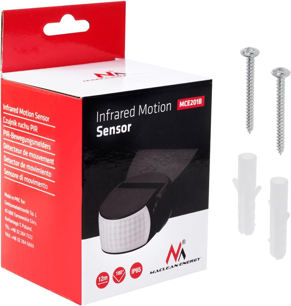 Maclean Energy MCE201B Moderno detector de movimiento por infrarrojos PIR Alcance de detección 12 m, Negro, IP65, Ahorro de energía