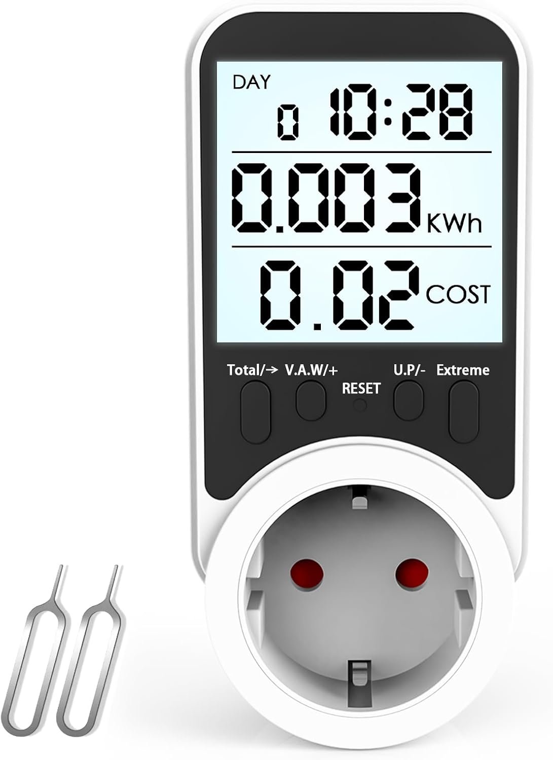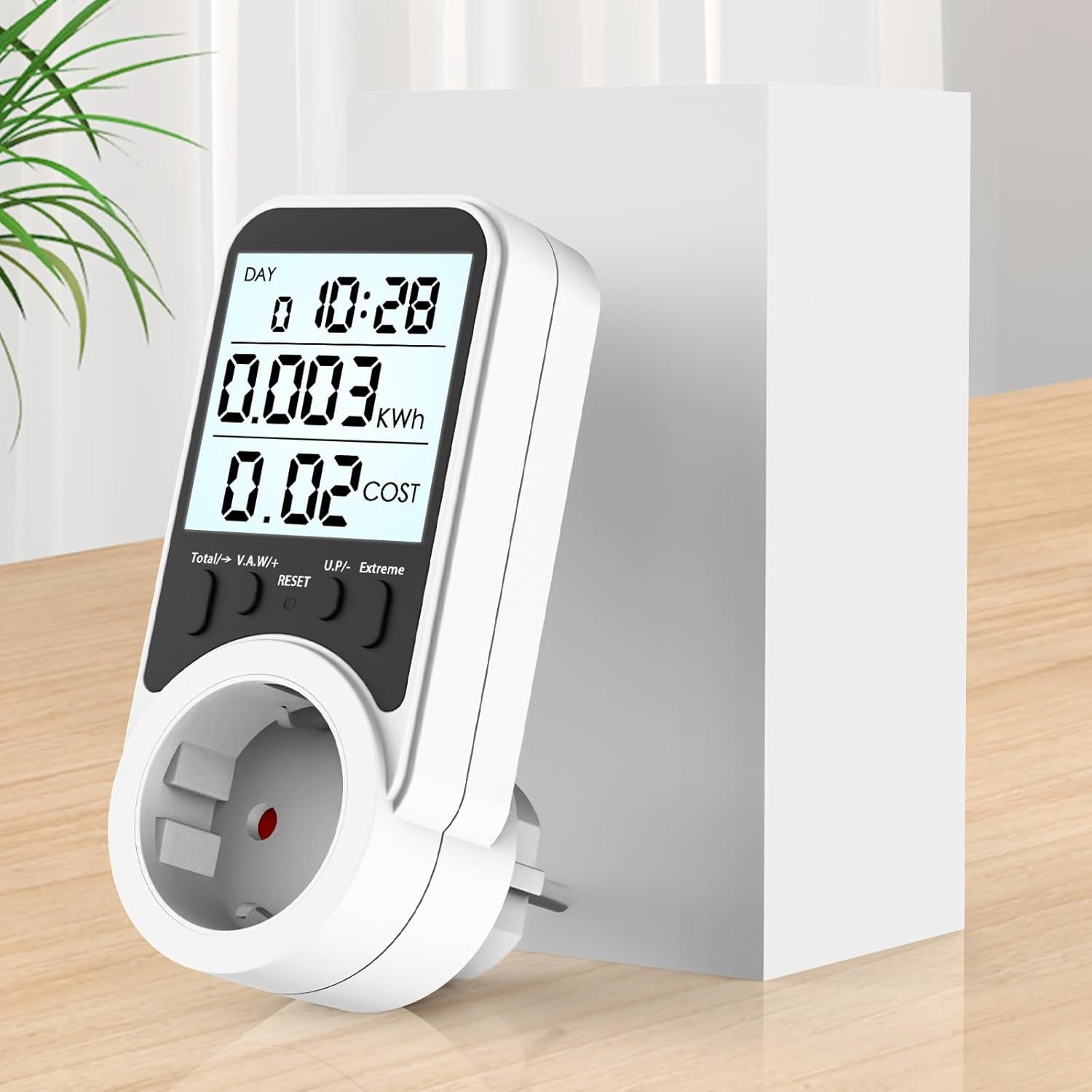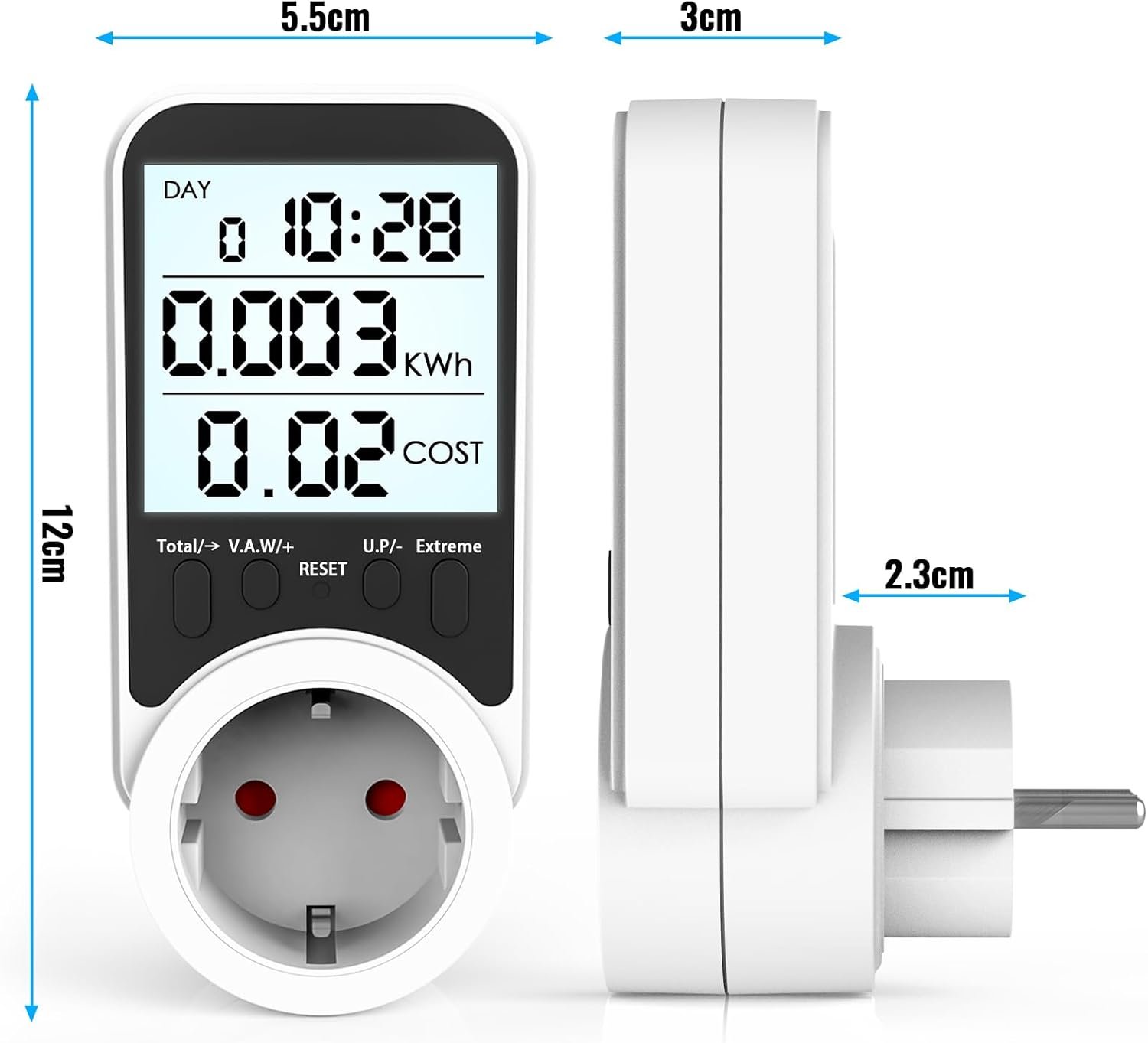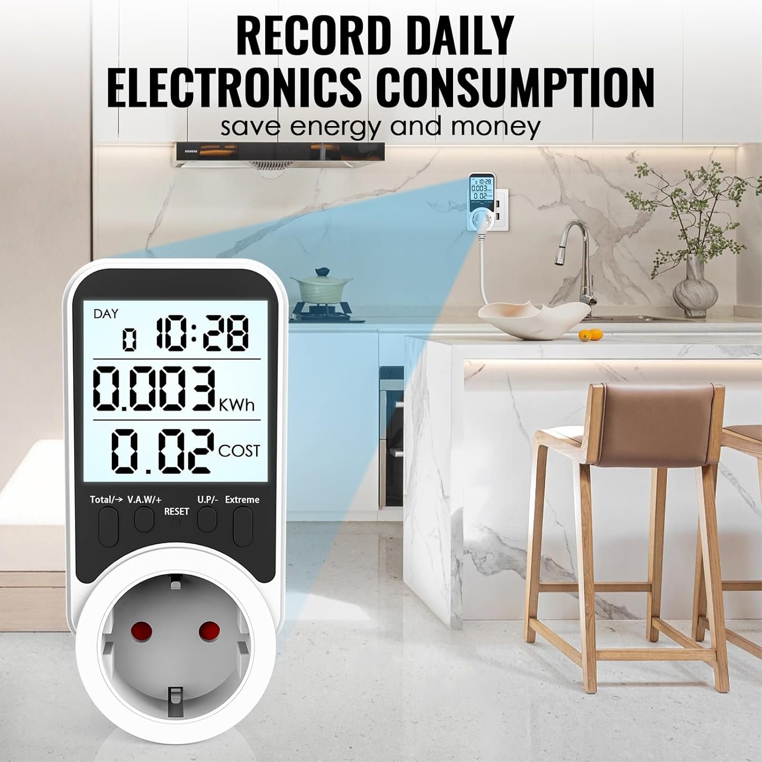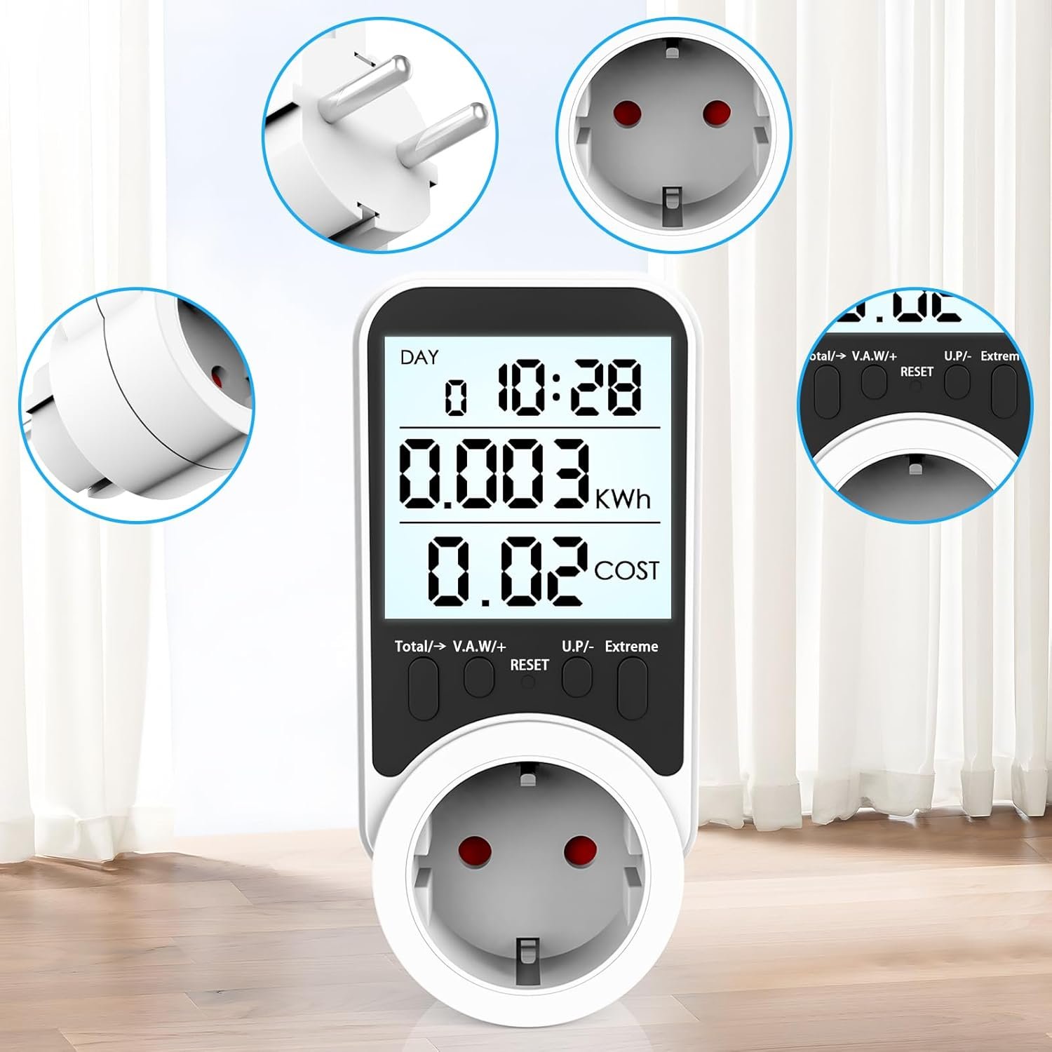Amplia Compatibilidad: Este medidor de consumo eléctrico es perfectamente adecuado para electrodomésticos como ordenadores, consolas de juegos, frigoríficos, aires acondicionados, televisores, lavadoras, secadoras, lavavajillas y otros equipos de cocina. Le ayuda a controlar el consumo de energía real, identificar electrodomésticos de alto consumo y reducir su factura de electricidad.
