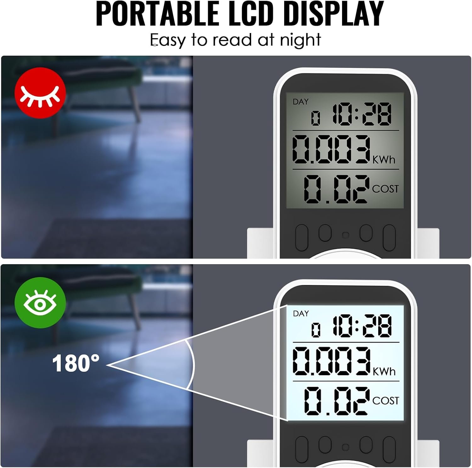 PANTALLA RETROILUMINADA: el medidor de consumo eléctrico tiene una gran pantalla LCD con retroiluminación para que pueda leer los datos fácilmente incluso en ambientes con poca iluminación. Los botones de control son sencillos y prácticos. Se proporcionan dos pines de reinicio para que pueda restablecer los valores fácilmente