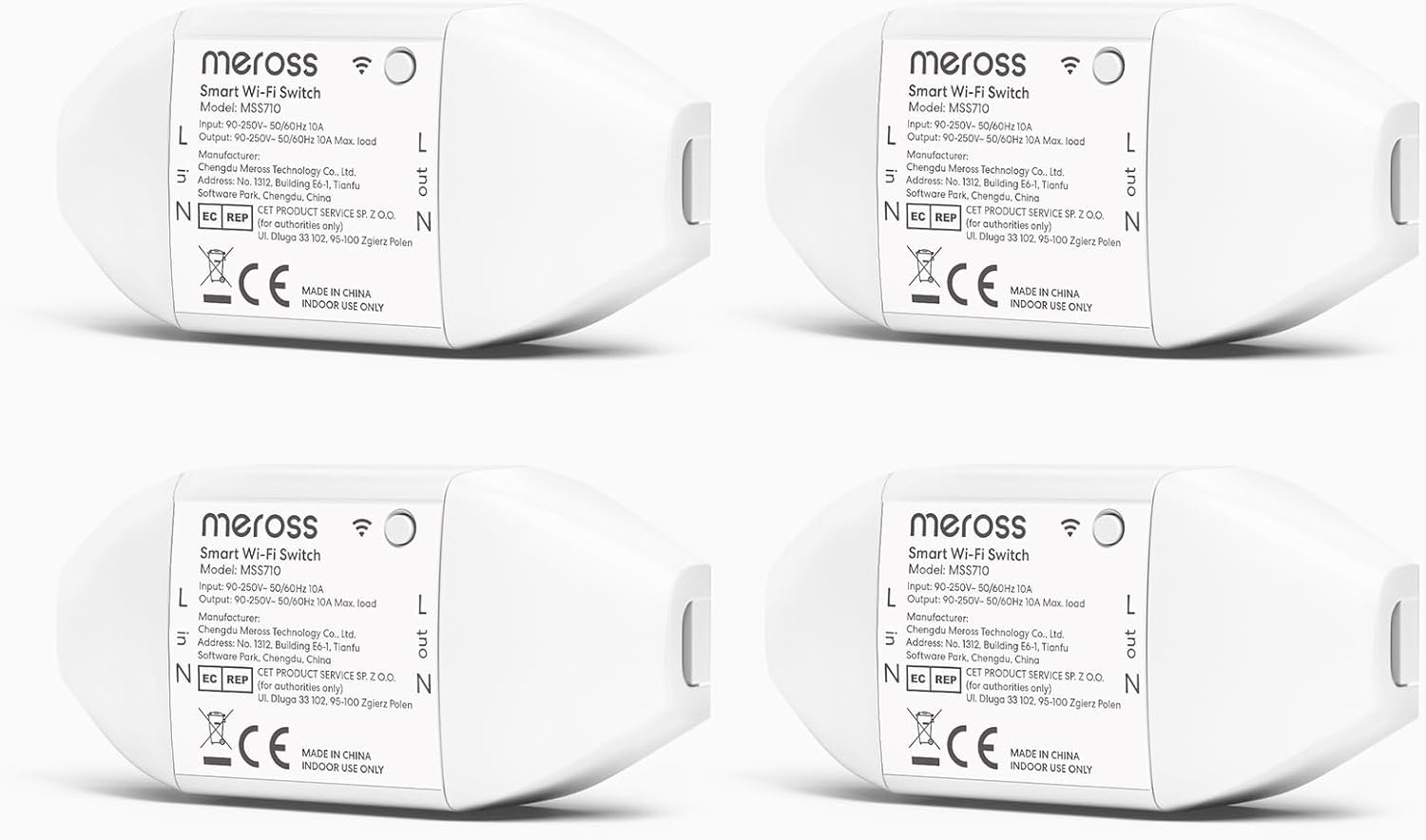 Meross Interruptor Inteligente Universal, Interruptor WiFi DIY 10A, Compatible con Alexa, Google Home y SmartThings, Interruptor WiFi con Control por Voz, Control Remoto, 4 Piezas