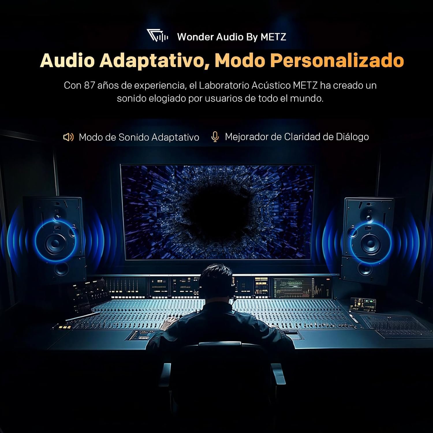 Dolby Audio y Wonder Audio adaptados a cada escena de tu Smart TV: con 87 años de experiencia, Metz ofrece un sonido envolvente en tu Smart TV. Seis modos y reducción de ruido optimizan el audio para películas, música y más en tu televisor de 40 pulgadas.