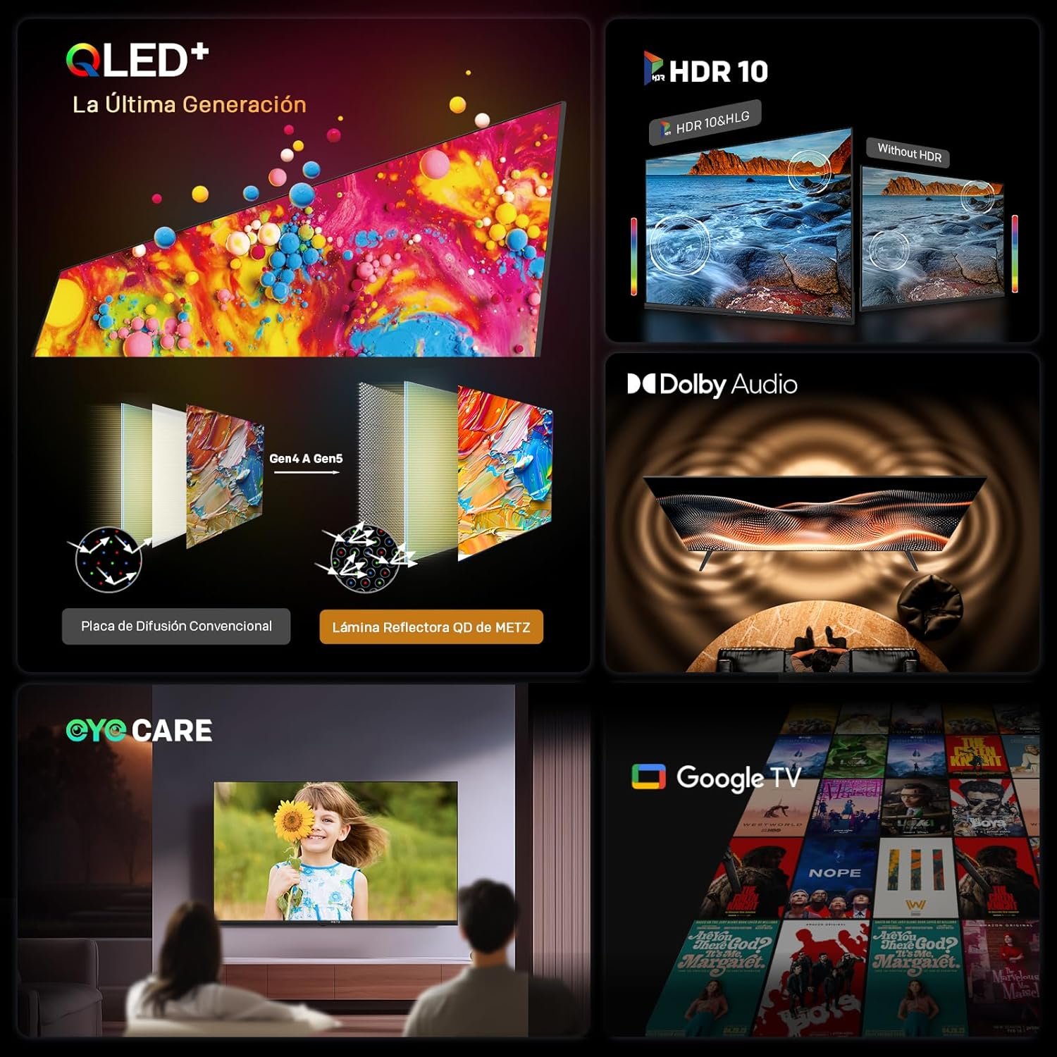 QLED+ de última generación en tu Smart TV de 40 pulgadas: Colores vibrantes y duraderos gracias a la tecnología QLED de METZ. 33% más de brillo y 130% BT.709 para una experiencia de visualización realista en tu televisor de 40″.
