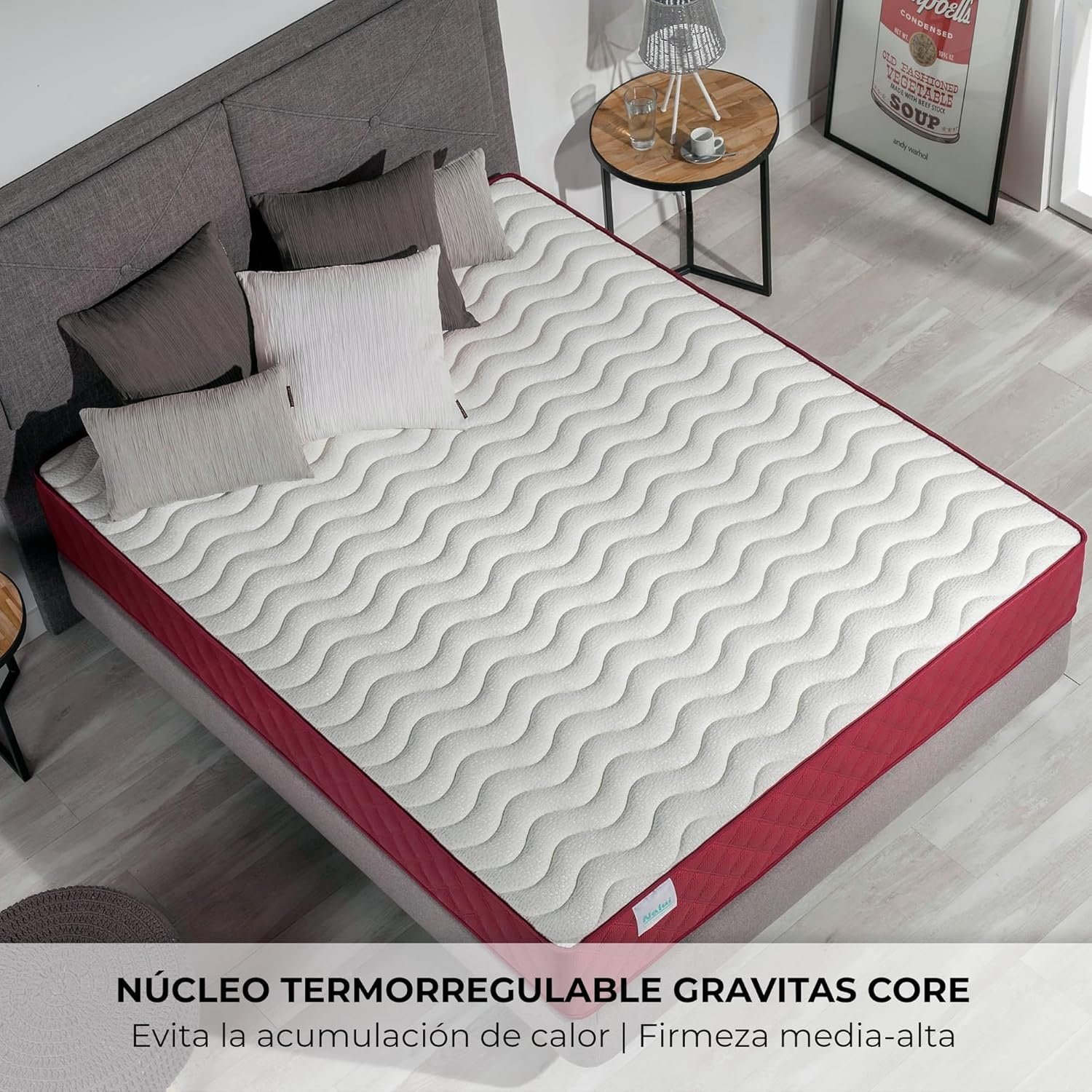 NÚCLEO GRAVITAS NÚCLEO. El colchón viscoelástico reversible cuenta con un núcleo de poro abierto que deja pasar y circular el aire libremente y con mayor fluidez, aportando al colchón un mayor grado de transpirabilidad. Es adecuado para cualquier tipo de base, ya sea somier de láminas, somier tapizado o canapé.