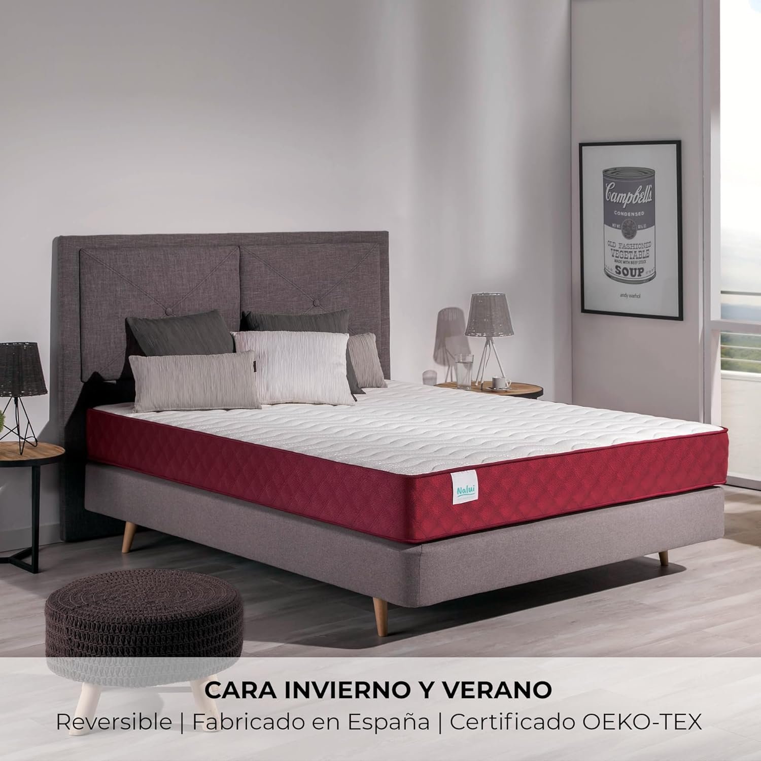NALUI – Colchón Viscomfort Reversible Gredos 135 x 190 cm con Sistema Viscomfort, Tejido Stretch y Tejido 3D Transpirable. Altura: ±21 cm | Firmeza Media-Alta | Adaptables | Hecho en España