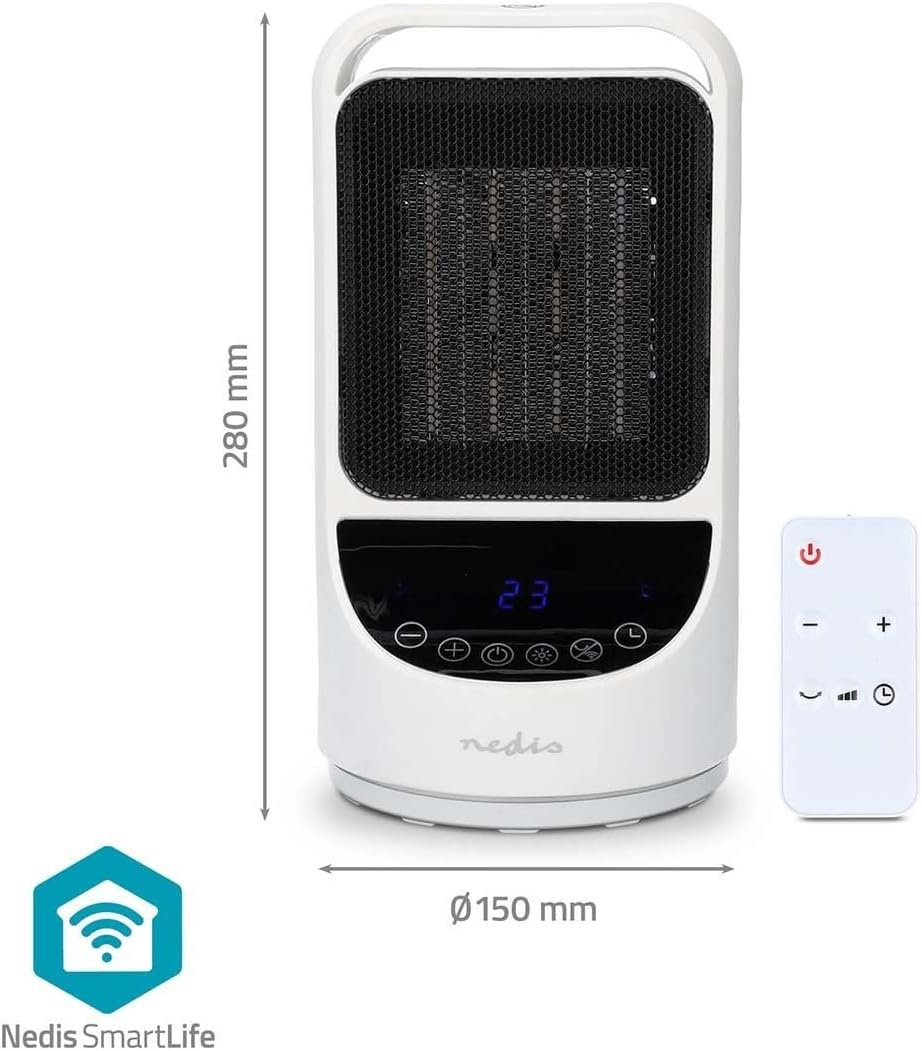 Fotos: Nedis HTFA22WTW | Calentador cerámico PTC inteligente | Wifi | 1500W | 2 niveles de calor | Oscilación | Pantalla de temperatura 10-49°C | Control de aplicaciones SmartLife | Blanco