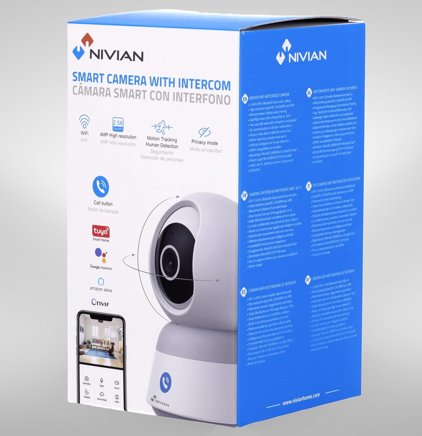 Descubra la seguridad inteligente con la cámara de vigilancia interior WiFi Domo 360º de NIVIAN. Con una impresionante resolución SUPER HD de 4MP, esta cámara ofrece una vista panorámica completa de su espacio. La tecnología de detección humana por IA y seguimiento automático garantiza un seguimiento preciso del movimiento, mientras que el audio bidireccional y la sirena incorporada permiten una comunicación efectiva. Compatible con Alexa y Google Home para una integración perfecta de la automatización del hogar, además admite almacenamiento en tarjetas MicroSD de hasta 256 GB. La instalación en pared es sencilla y su control mediante la app Tuya te da acceso remoto a todas sus funciones. Con un alcance de hasta 20 metros, esta cámara es ideal para mantener su hogar u oficina bajo vigilancia constante. Su diseño elegante y discreto encaja perfectamente en cualquier interior y brinda seguridad avanzada sin comprometer la estética de su espacio.