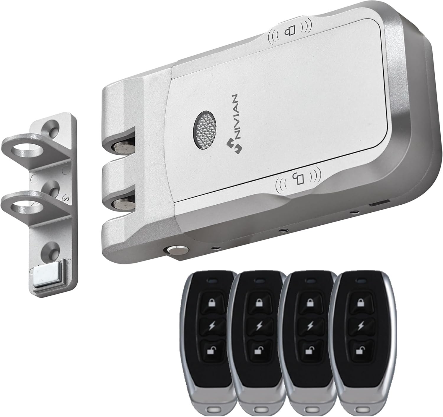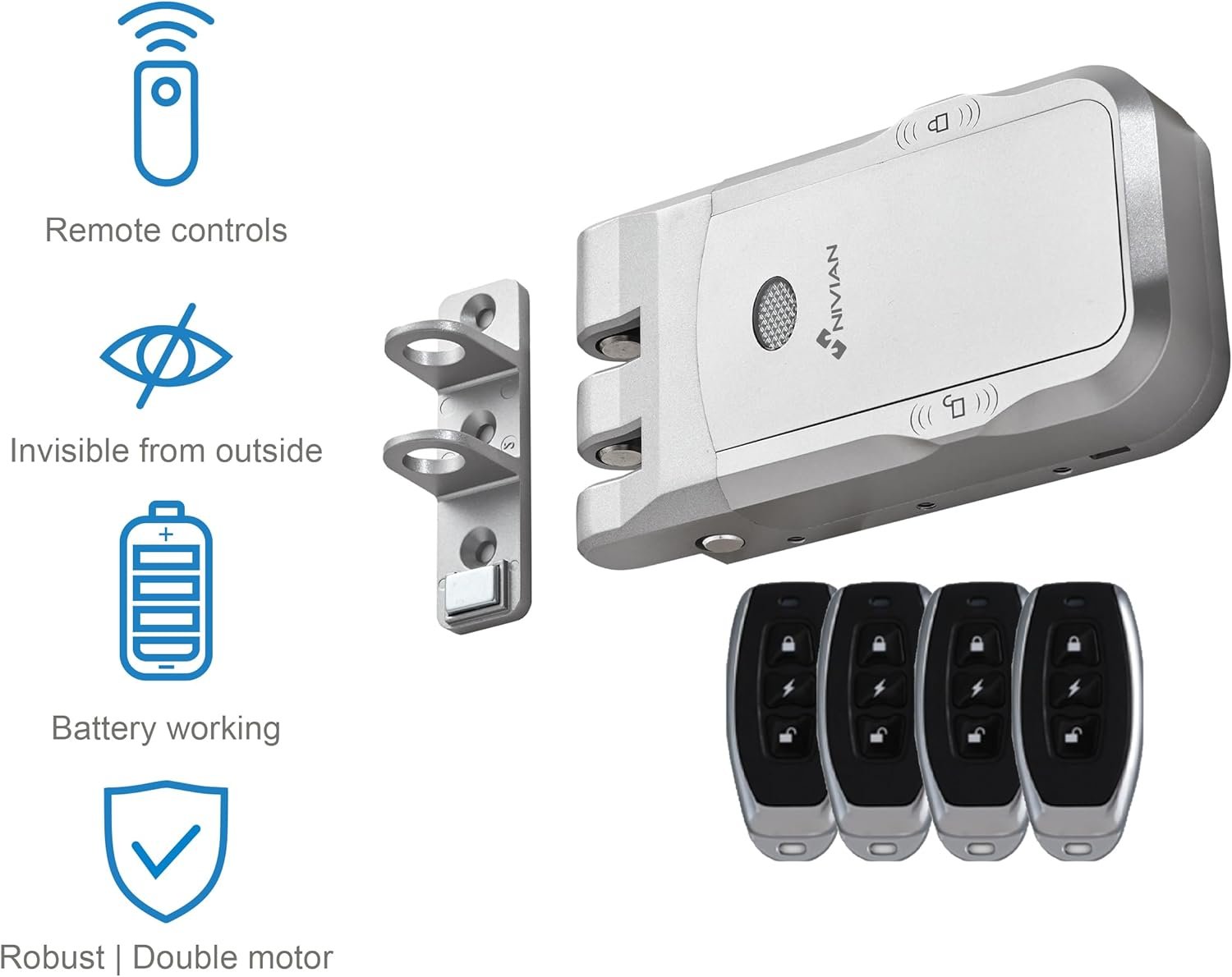 Fotos: Nivian Cerradura Invisible Electrónica Inalámbrica – Cerradura Antivandálica con Mandos a Distancia, Doble Motor, Apertura y Cierre desde Interior y Exterior (Sin App)