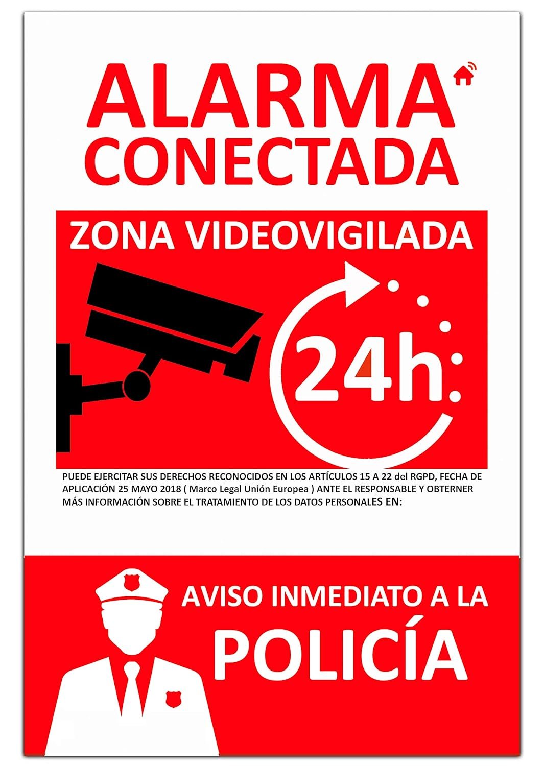 Nueva señal de alarma conectada de PVC expandido de 3 mm, resistente a la intemperie y al fuego (señal A4)