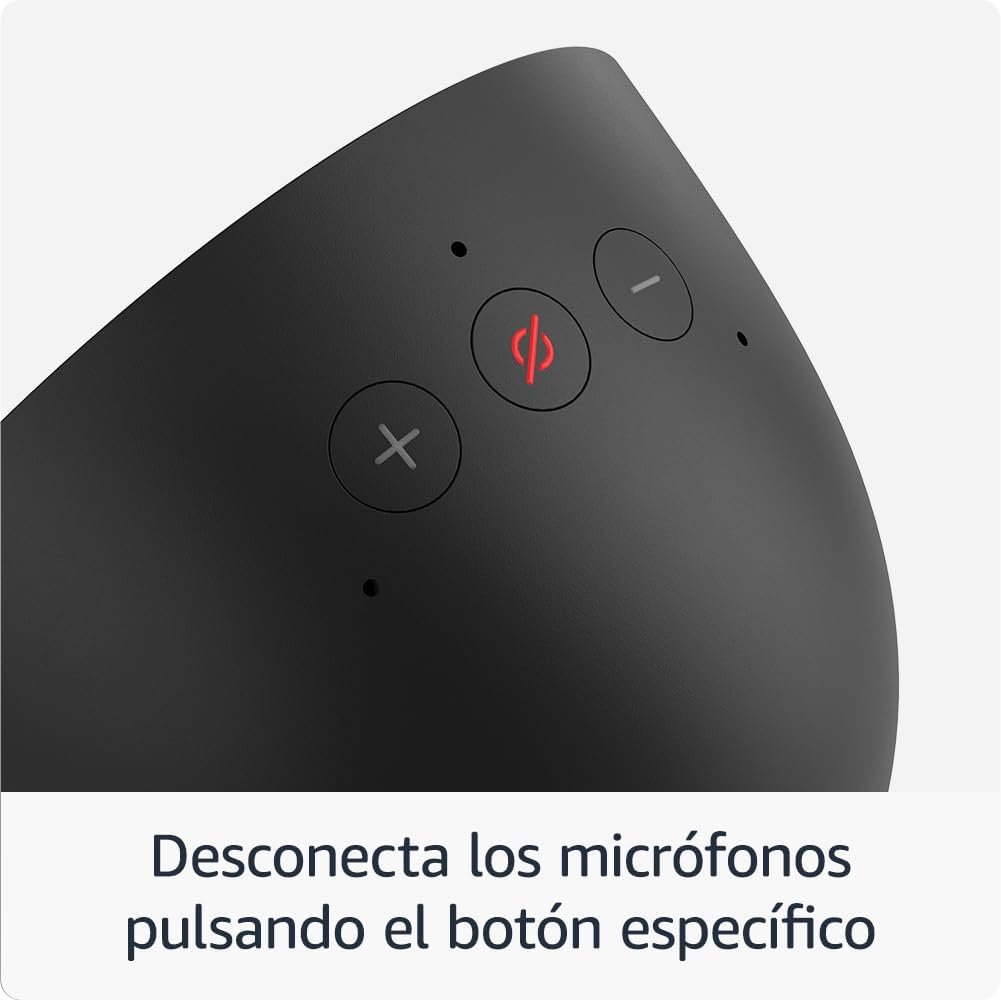 DESCUBRE EL NUEVO ECHO SPOT: Un despertador inteligente con Alexa que luce moderno y con sonido de calidad. Ideal para despertarse por la mañana, relajarse por la noche y más. ALARMA INTELIGENTE PERSONALIZABLE: vea de un vistazo la hora, el tiempo y el título de la canción que se reproduce, controle sus dispositivos domésticos inteligentes y más. Personaliza la pantalla de tu dispositivo con tu esfera de reloj favorita y divertidos temas coloridos. SONIDO POTENTE E INTENSO: disfrute de un sonido rico en matices con voces nítidas y graves ricos. Pídele a Alexa que reproduzca música, podcasts y audiolibros desde tus servicios de transmisión favoritos como Amazon Music, Apple Music, Spotify y más. Vea qué canción se está reproduciendo y controle la música desde la pantalla. COMIENZA TU DÍA CON BUEN PIE: Crea una rutina de Alexa que te ayude a despertarte tranquilamente con música e iluminación gradual. Consulta la hora, consulta tus recordatorios o pregúntale a Alexa qué tiempo hace. MANTENGA SU HOGAR CÓMODO: controle dispositivos domésticos inteligentes compatibles. Pídele a Alexa que encienda las luces o toca la pantalla para atenuar el brillo. DISEÑADO PARA PROTEGER SU PRIVACIDAD: Fabricado con múltiples capas de protección y controles de privacidad, incluido un botón que desactiva los micrófonos electrónicamente. DISEÑADO PENSANDO EN LA SOSTENIBILIDAD: El dispositivo está fabricado con un 36 % de materiales reciclados.
