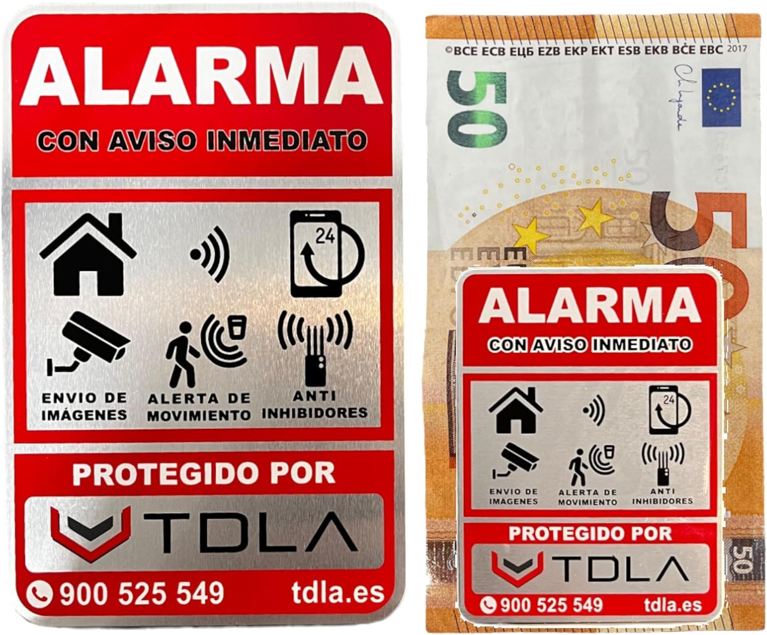 PACK 2 Tallas – NO PARECE REAL, LO ES. Súper Adhesivo y Aluminio – Somos una empresa de venta de alarmas Alarma de piso especial cartel alarma disuasoria roja – 14 x 9 cm y 8 x 6 cm