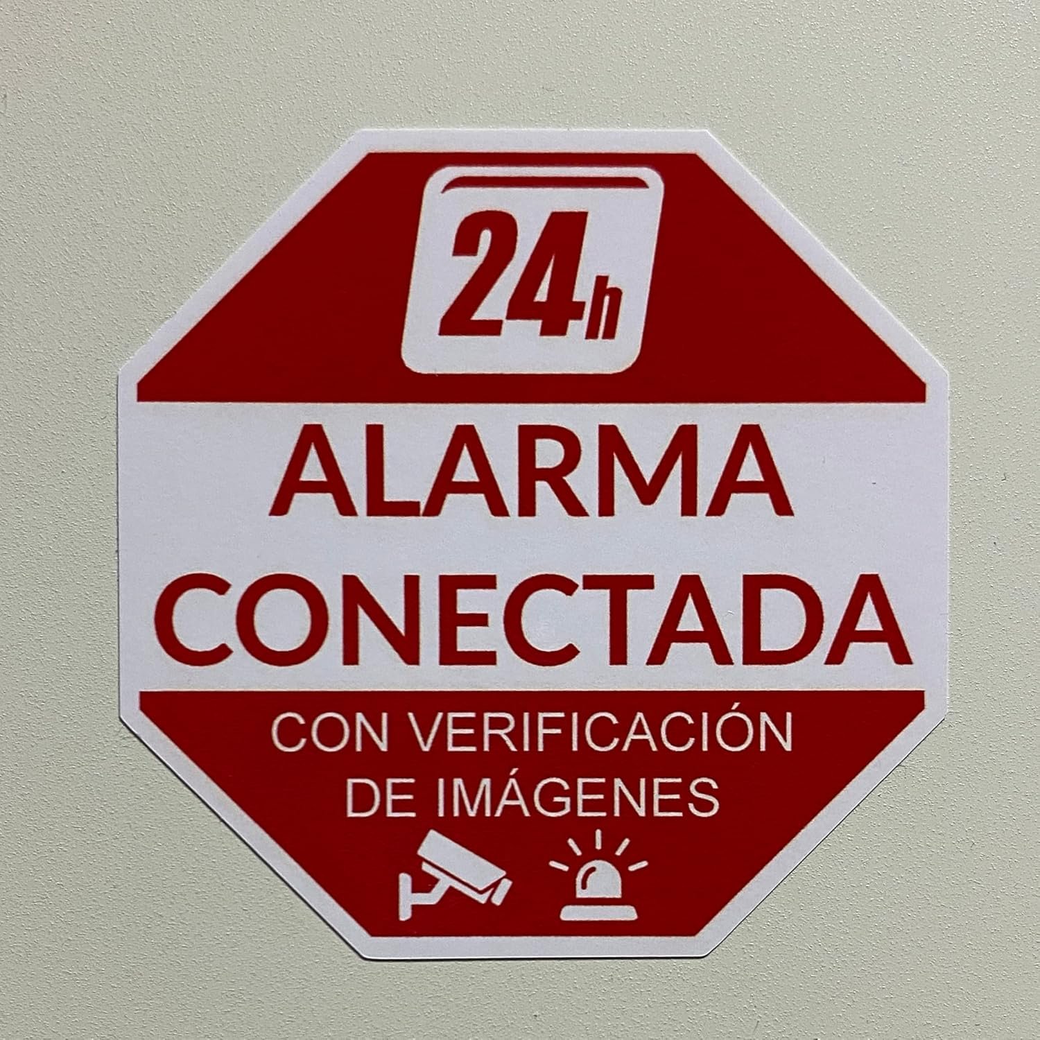 Adhesivo disuasorio de alarma. Adhesivo de alarma conectado 24h con verificación de imagen. Pegatina de 5,5 cm, muy llamativa para no pasar desapercibida con mensaje claro y conciso; Adhesivo indicado para uso comercial y/o privado para disuadir a los amigos de los demás. Apto para cualquier superficie lisa, puertas de madera, aluminio, vidrio etc. ☀️️ Adhesivo de vinilo de alta calidad para uso interior/exterior, muy resistente tanto a los rayos UV como al agua. Fácil instalación. Limpia la superficie con alcohol, retira la pegatina del papel y pégala en la superficie deseada. Fabricado en España por Becral. Adhesivo disuasorio de alarma. Adhesivo de alarma conectado 24h con verificación de imagen. Adhesivo de alarma de casa de 5,5 cm, muy llamativo para no pasar desapercibido con mensaje claro y conciso Adhesivos aptos para uso comercial y/o privado para disuadir a los amigos de los demás. Apto para cualquier superficie lisa, puertas de madera, aluminio, cristal, etc. ☀️️ Adhesivo de vinilo de alta calidad para uso interior/exterior, muy resistente tanto a los rayos UV como al agua. Fácil instalación. Limpia la superficie con alcohol, retira la pegatina del papel y pégala en la superficie deseada. Fabricado en España por Becral. Cantidad a elegir: Pack de 2 o Pack de 6 pegatinas de alarma