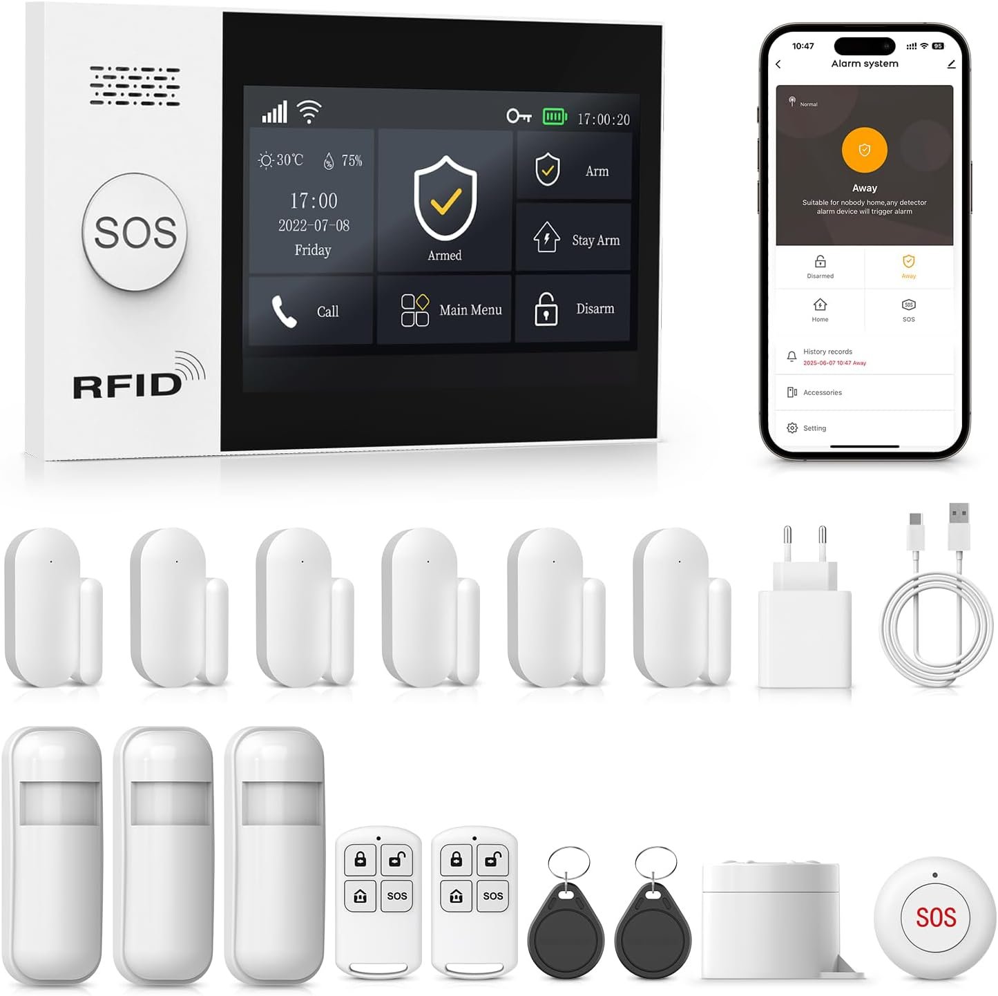 PGST Kit de Alarma para el Hogar con Alarma Móvil, Sistema de Alarma para el Hogar WiFi y GSM sin Cargos con Pantalla Táctil de 4,3″ y Batería de 1000 mAh, App Tuya Smart Life, Alexa y Google
