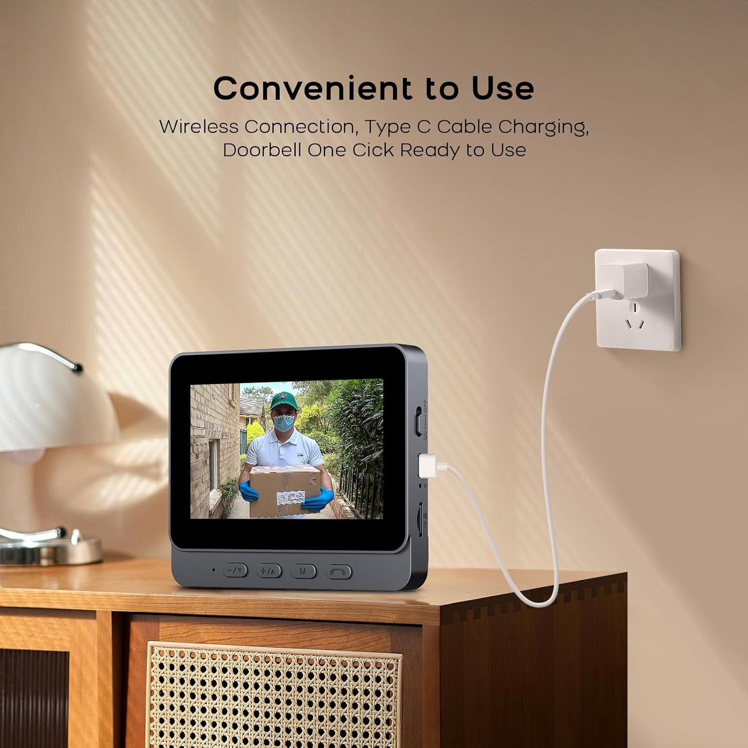 (Batería de larga duración): Este timbre inalámbrico con cámara tiene una batería de polímero de litio de 800 mAh, que proporciona hasta 1-3 meses de tiempo de espera después de una sola carga. La pantalla debe estar conectada a una fuente de alimentación.