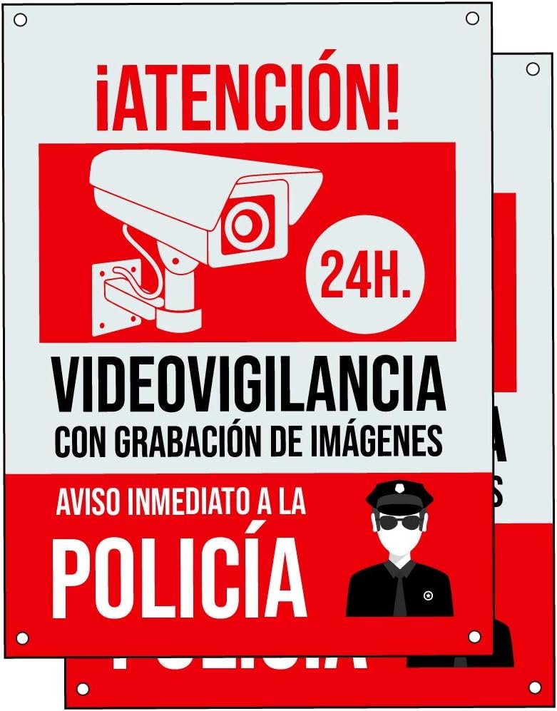 Póster de Videovigilancia – Placa de Alarma Conectada – Pósteres Área de Videovigilancia – Aviso a la Policía 20 x 15 cm Rojo Interior/Exterior (2 Piezas Póster de Videovigilancia)