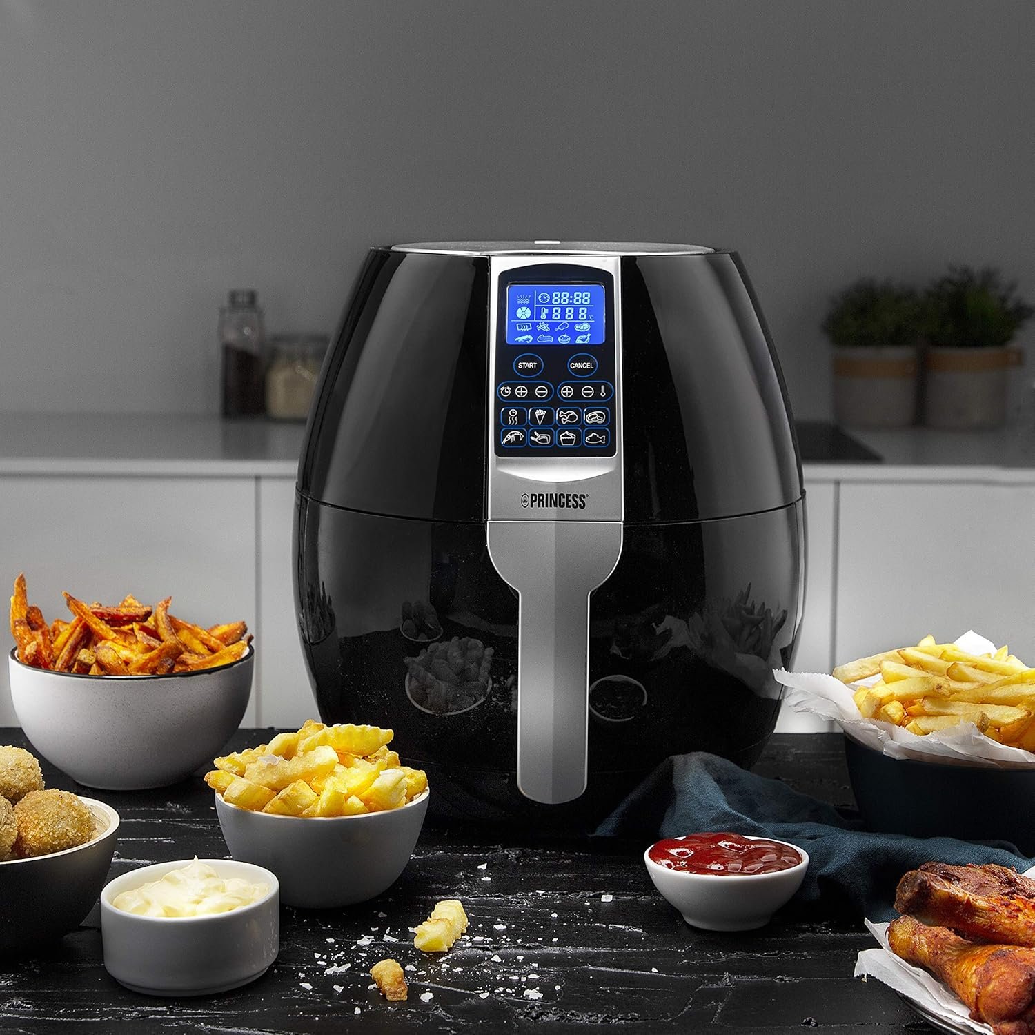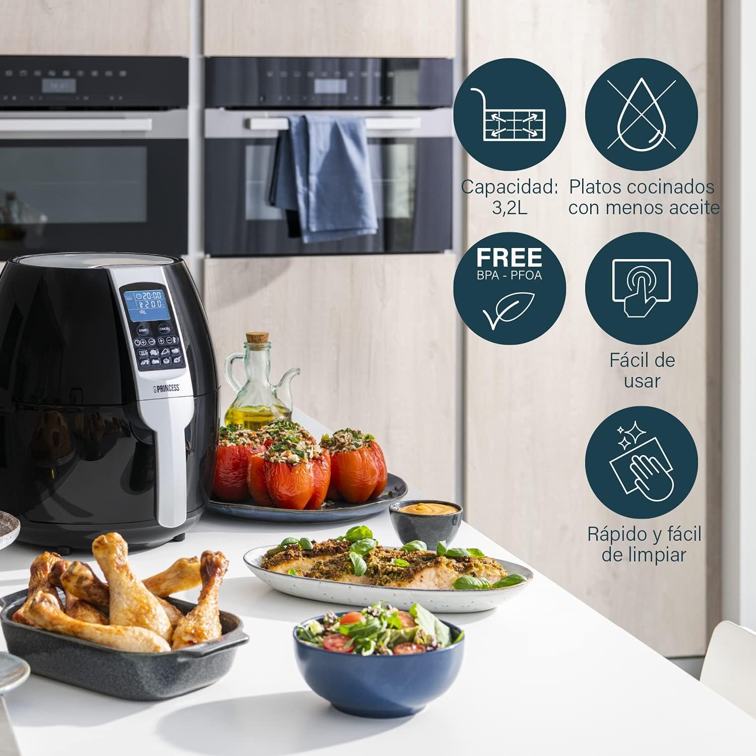 Princess 182020 Aerofryer XL – Aerofryer, Panel de Control Digital Táctil, Fácil de Limpiar, 1500 W, 3,2 Litros