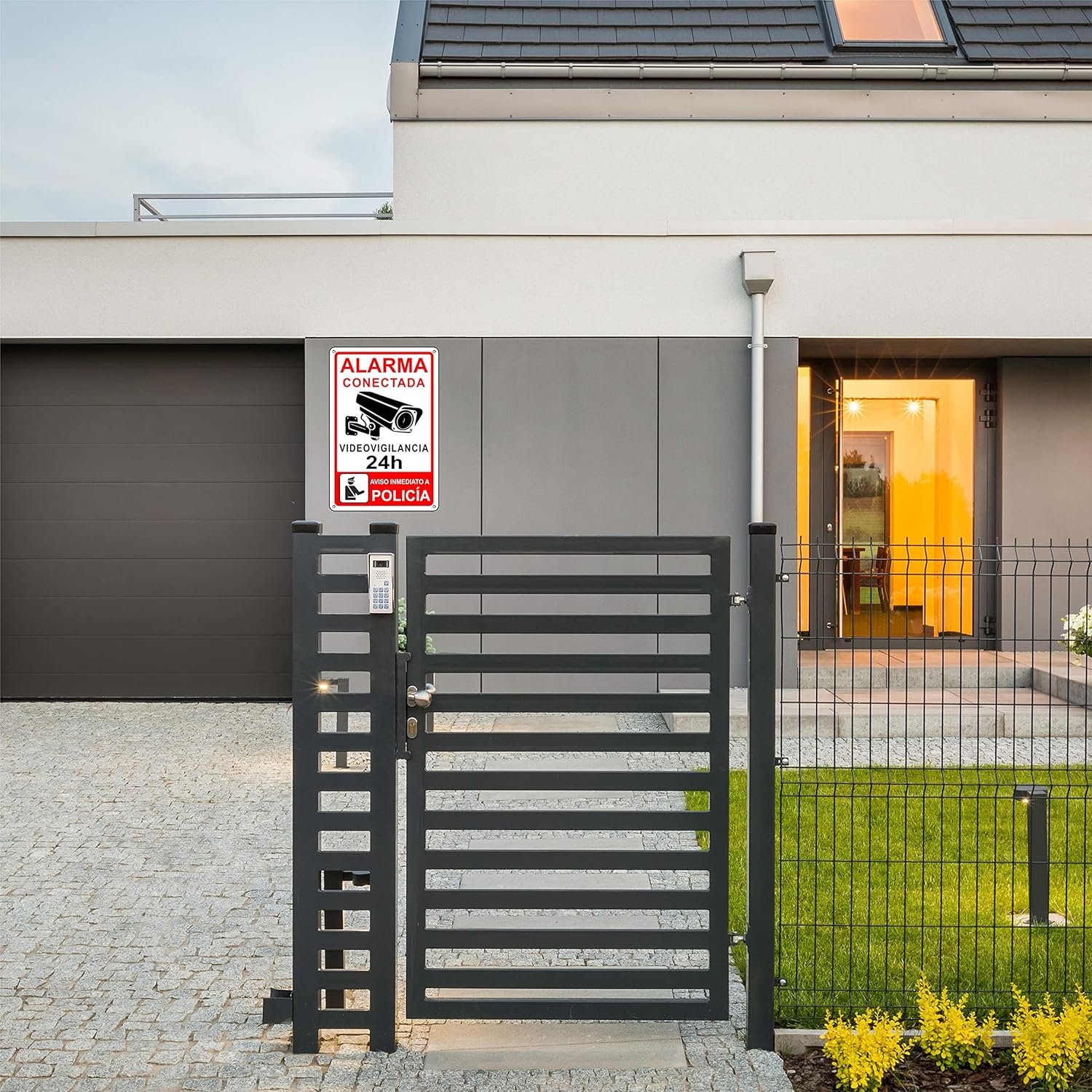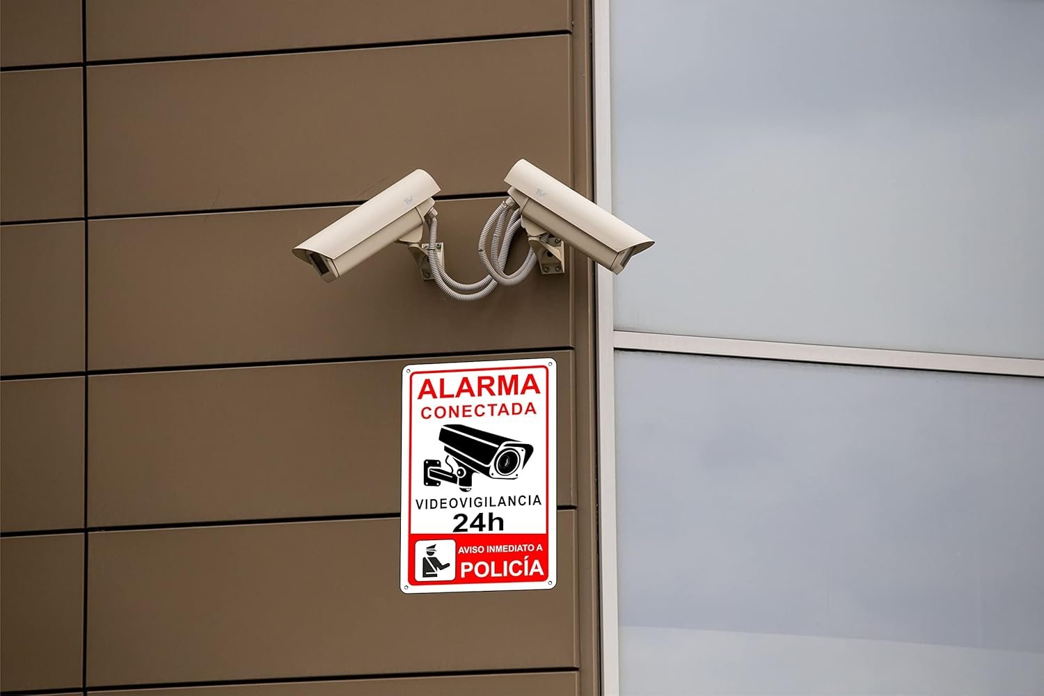 Fotos: pubblimania Cartel Alarma Conectado Cartel Videovigilancia Aviso a la Policía en Aluminio 3mm (Cm 20×30, Cartel Alarma Conectada)