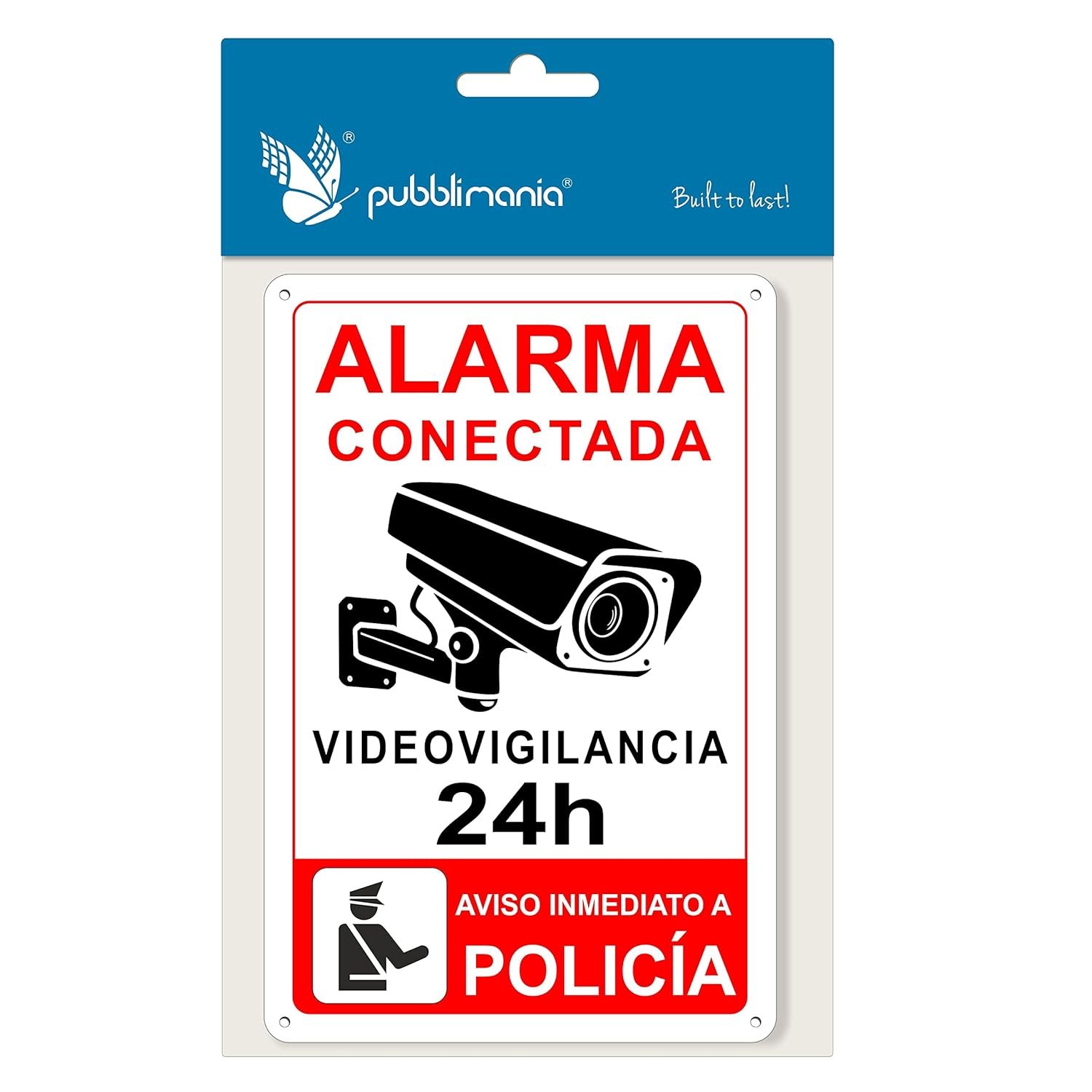 pubblimania Cartel Alarma Conectado Cartel Videovigilancia Aviso a la Policía en Aluminio 3mm (Cm 20×30, Cartel Alarma Conectada)