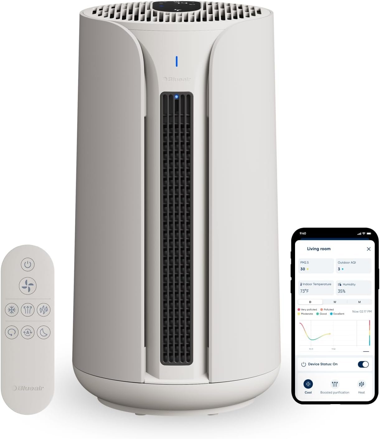 Purificador de aire BLUEAIR 3 en 1: refrigeración, calefacción y limpieza. Purificador de aire silencioso HEPA para el hogar, mascotas, alergias, polvo, humo y olores. Blueair ComfortPure T10i