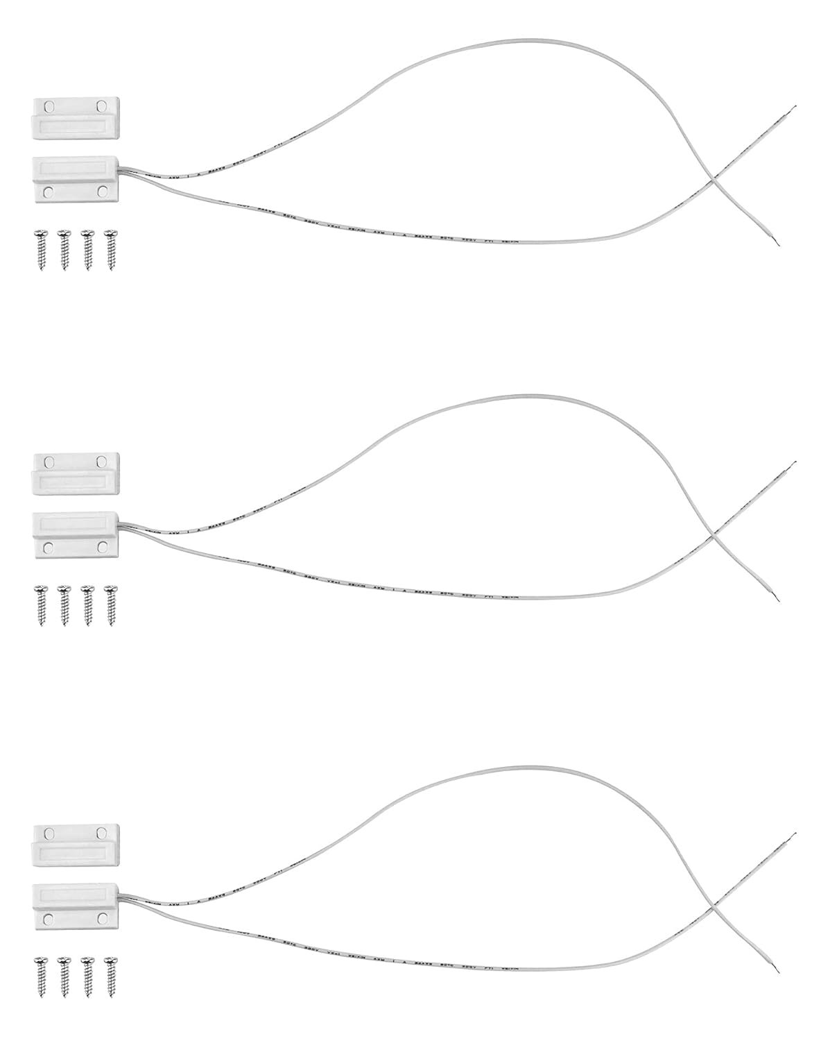 QWORK® 3pcs MC-38 Sensor de ventana de puerta con cable, Sensor de contacto de puerta de ventana de seguridad Alarma Interruptor de lámina magnética (NO)
