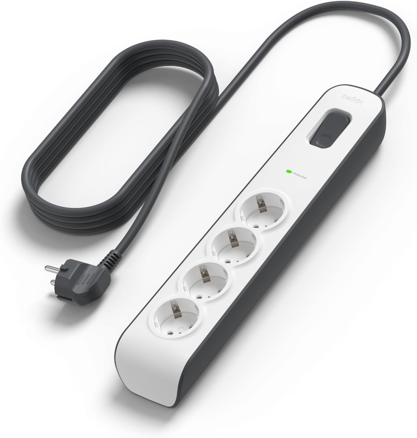 Regleta con protector contra sobretensiones de 4 tomas Belkin – Thief con 4 tomas de CA protegidas, 525 julios, cable de 2 m, multiplicador de enchufes eléctricos protegidos