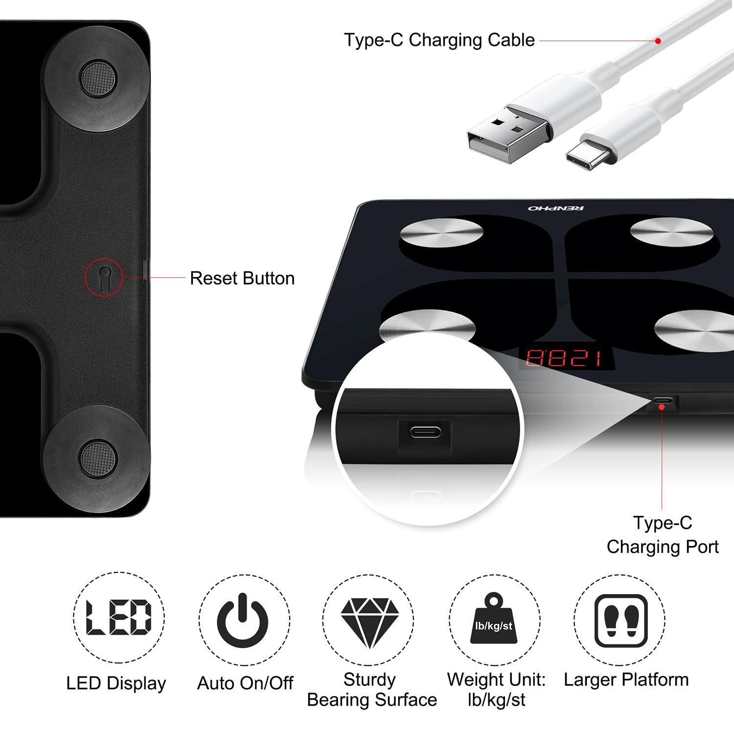 Fotos: RENPHO Báscula de Grasa Corporal con Bluetooth – Elegante Báscula Digital IMC, Analizador de Composición Corporal Recargable con USB y App, Elis 1