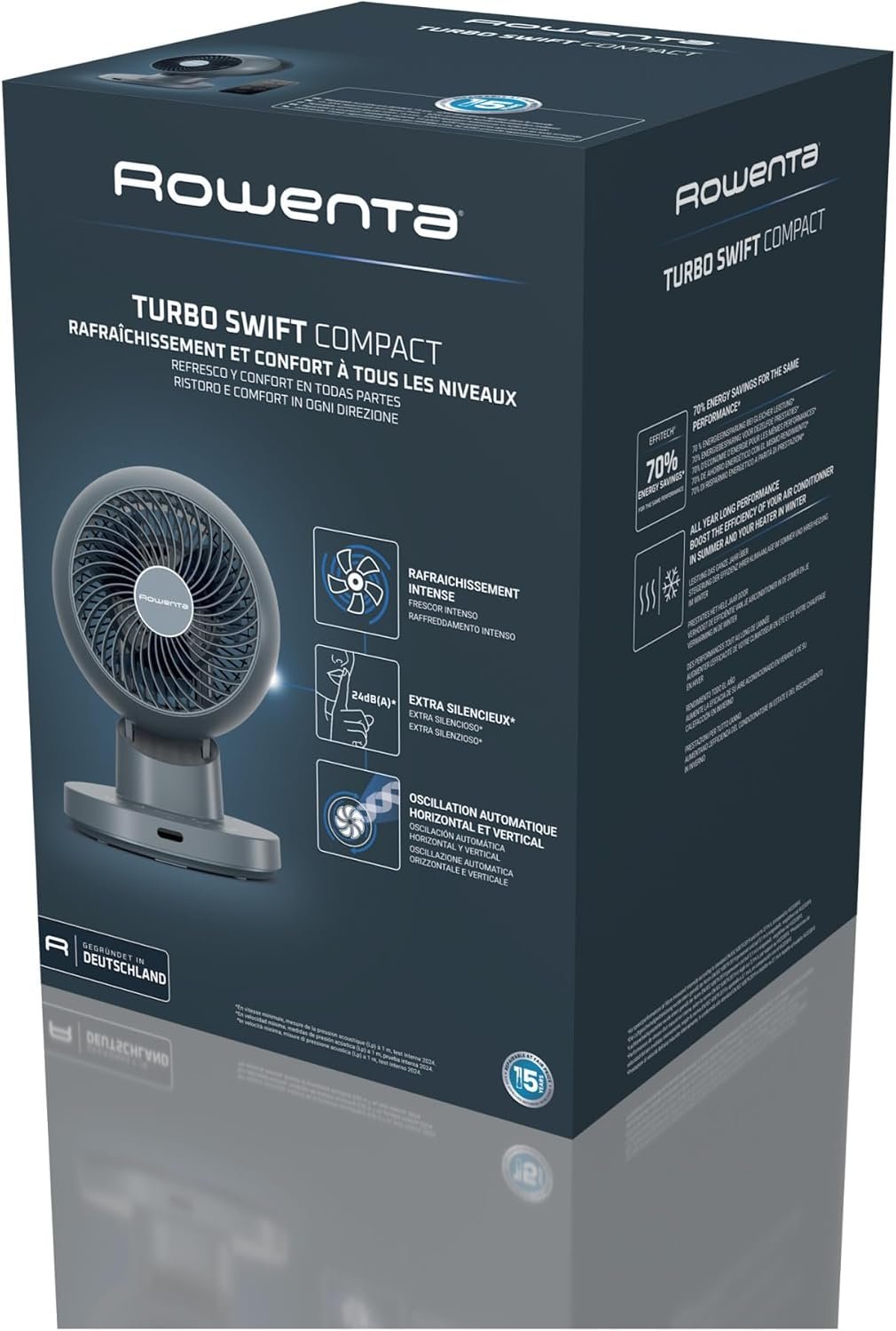 Rowenta Turbo Swift Ventilador de mesa compacto, frío intenso con silencio extremo, oscilación multidireccional, QV2540F0