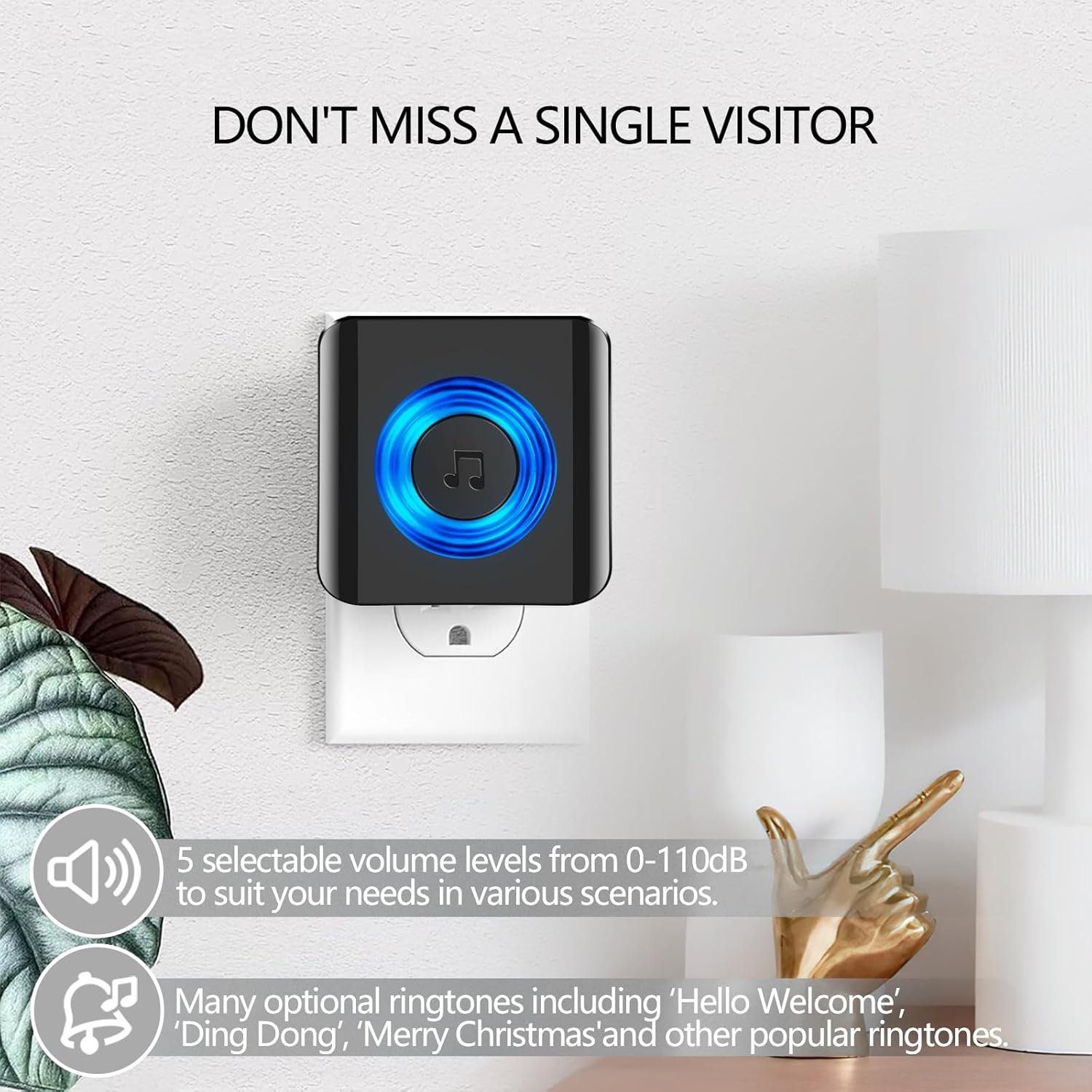 Satisure Forwarding Timbre para Timbre con Vídeo Blink (Video Doorbell), Set de Extensión de Timbre Inalámbrico 58 Melodías y 5 Niveles de Volumen Receptor para Timbre con Vídeo Blink, Negro Kit de Reenvío de Señal de Radio, 1 Convertidor de Radio y 1 Receptor de Enchufe Se necesita un cable para conectar el transmisor y su timbre. Utilice primero el cable preinstalado; empareje el transmisor y el receptor, empareje el sistema de timbre a través de la configuración de la APLICACIÓN manteniendo presionados los botones de brillo durante 3 segundos, luego toque el timbre con video El receptor de timbre inalámbrico ofrece 5 niveles de volumen ajustables con un volumen máximo de 110 dB Diseñado para personas mayores y con problemas de audición; 58 melodías diferentes suenan claramente para satisfacer diferentes necesidades. El timbre inalámbrico Satisure es totalmente compatible con el timbre con vídeo Blink. SERVICIO AL CLIENTE: si tiene alguna pregunta o consejo durante el uso después de recibir el producto, no dude en contactarnos con Satisure Direct. Ofrecemos servicio al cliente 24 horas al día, 7 días a la semana.