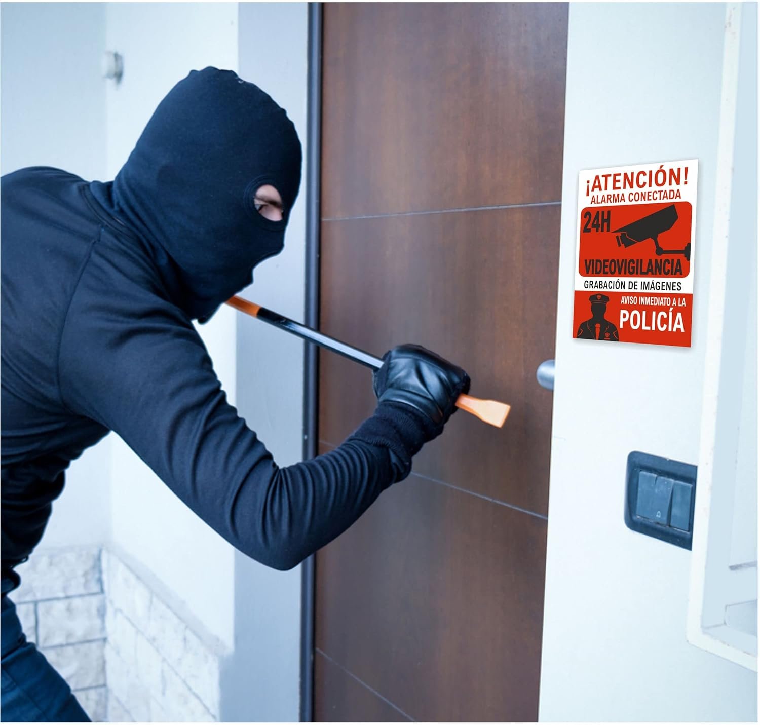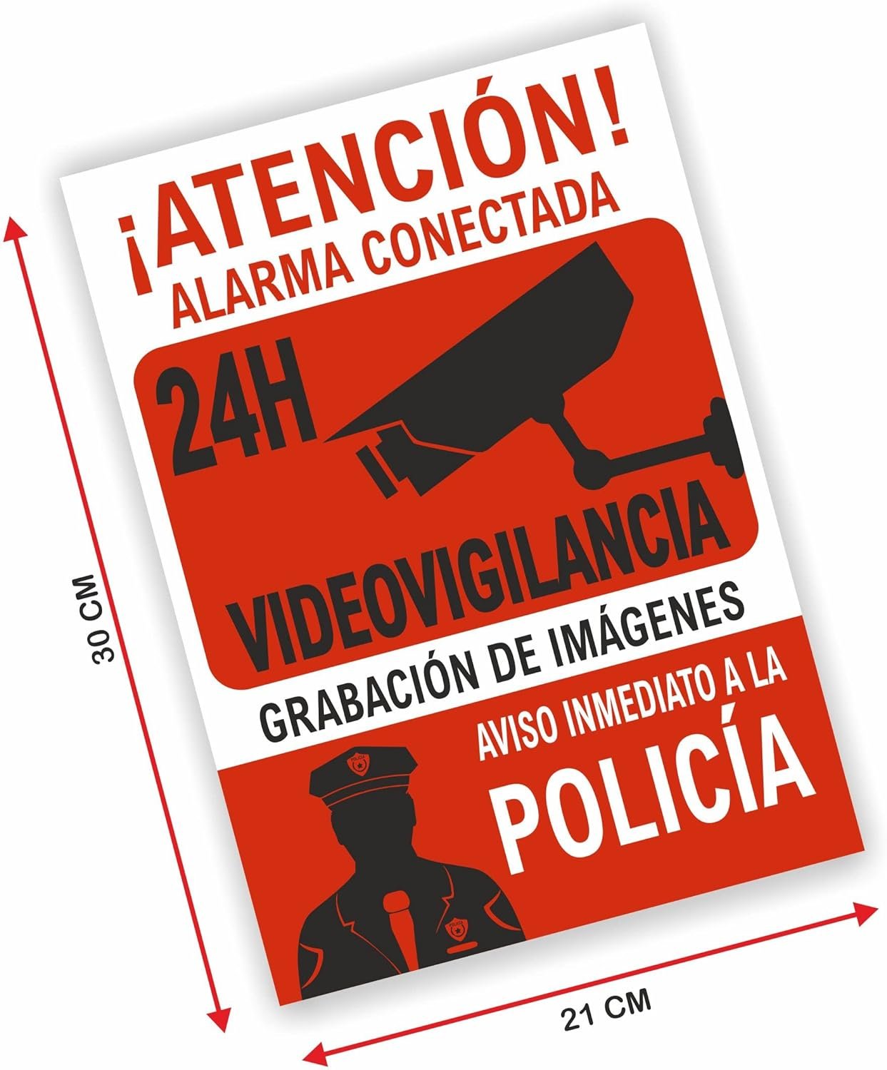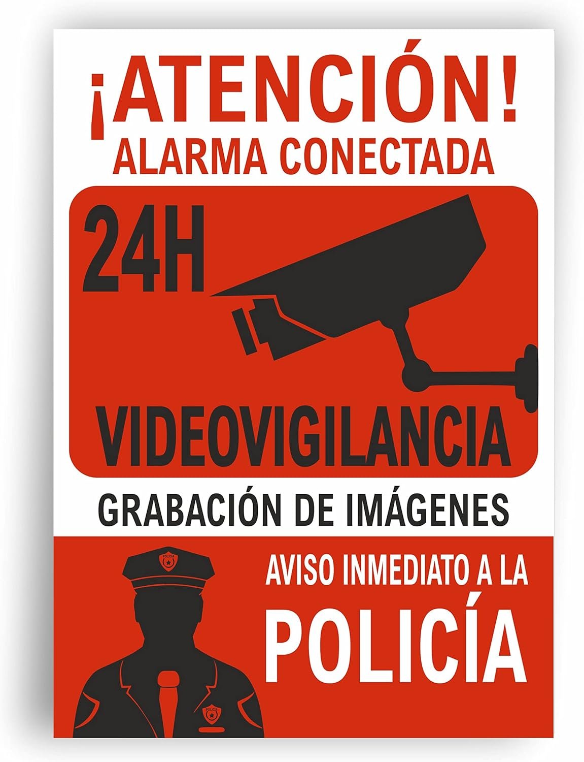 Fotos: Señal de Videovigilancia, Alarma Conectada, Señal de PVC Rígido 0,7 mm A4 21 x 30 cm Tinta y Material Resistente Interior y Exterior
