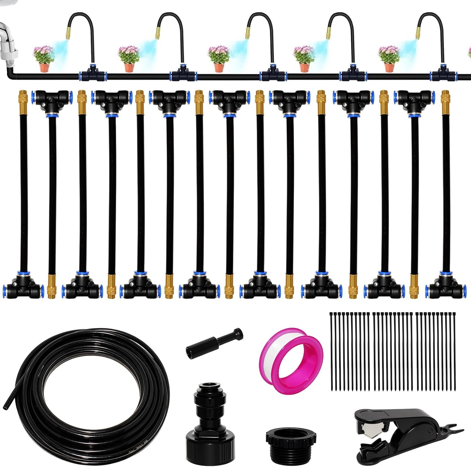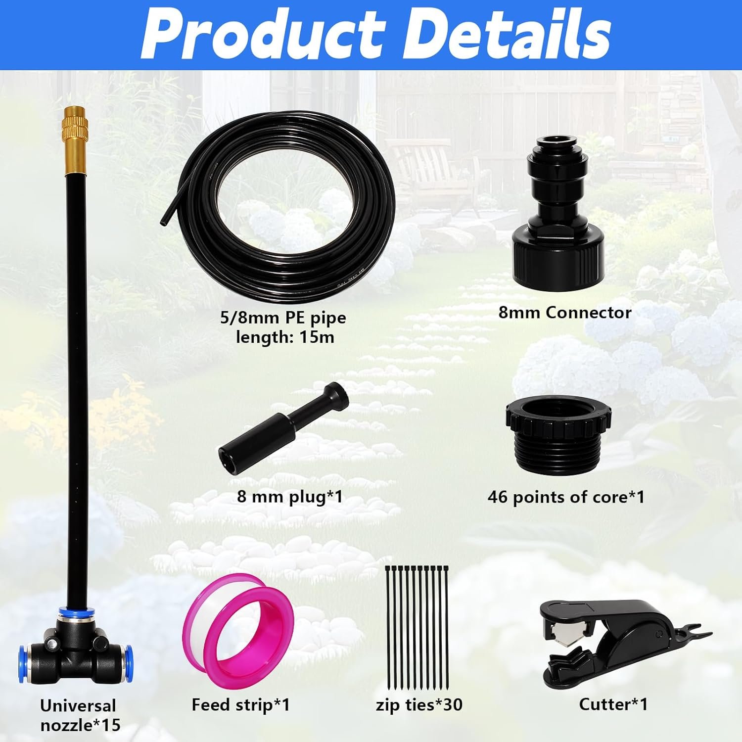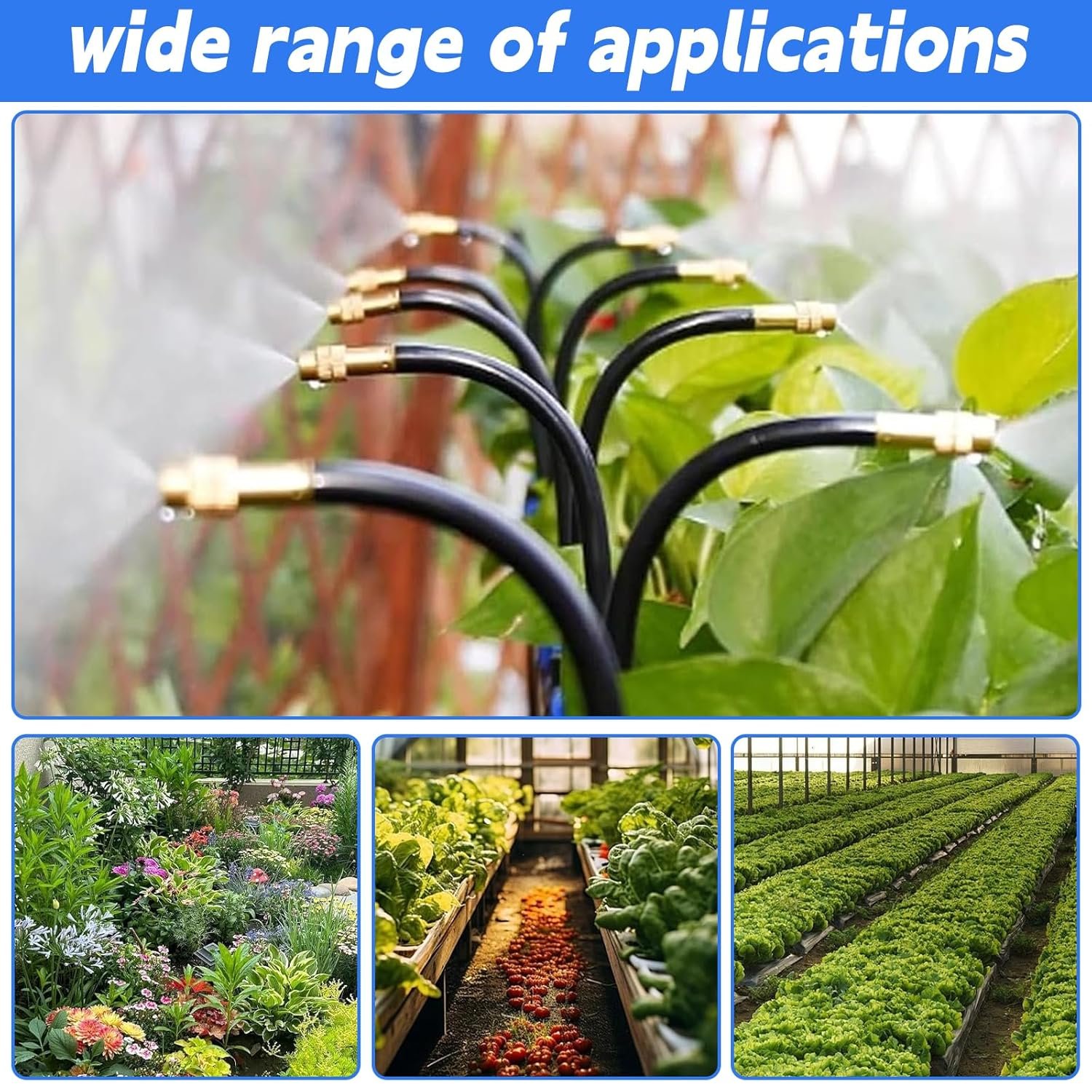 USO VERSÁTIL: El kit de riego automático es adecuado para cualquier ubicación deseada, como sistemas de enfriamiento de piscinas, huertos, atomización de césped, enfriamiento por nebulización, supresión de polvo o humidificación de jardines.