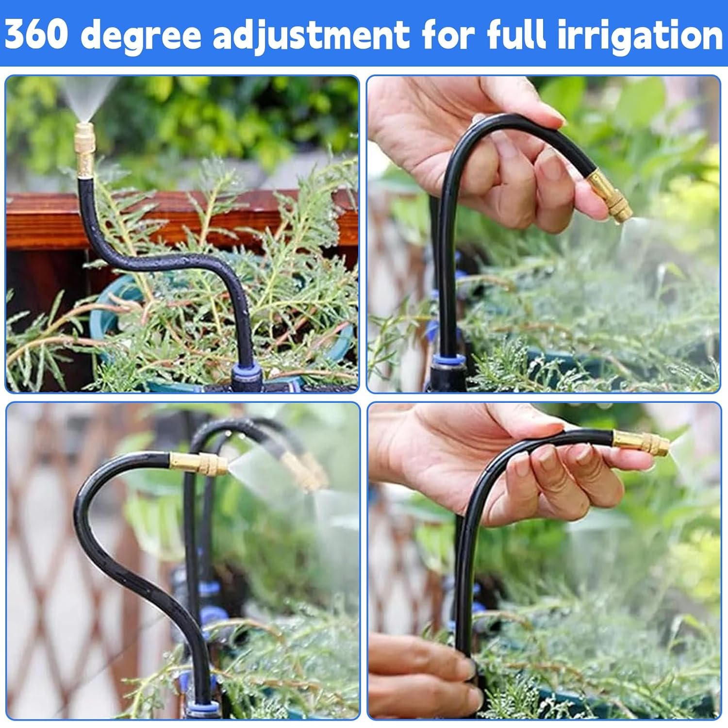 Sistema de riego automático de jardín de 360°, kit de riego de jardín, boquilla flexible ajustable, para patio de nebulización de césped, gran patio trasero(15m)