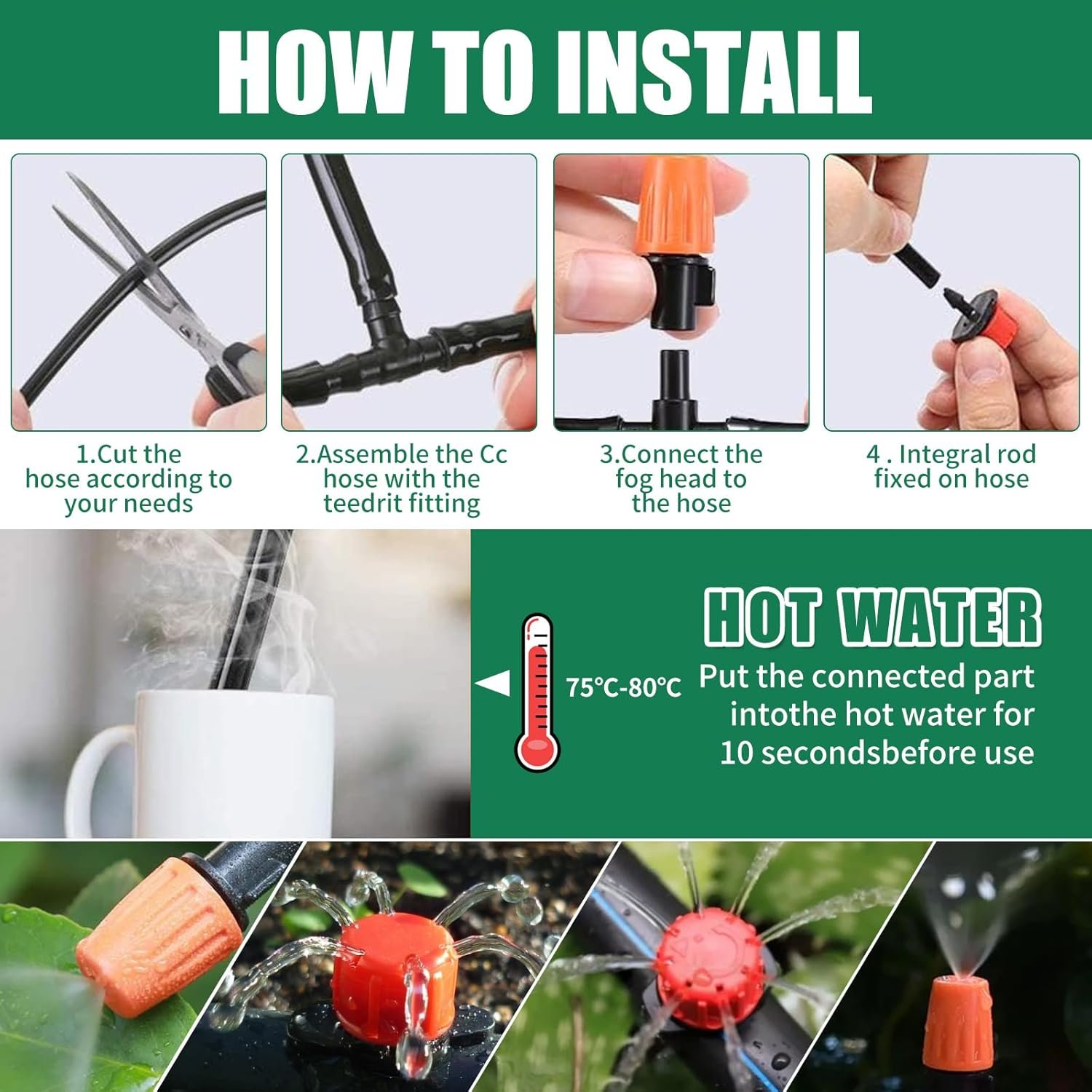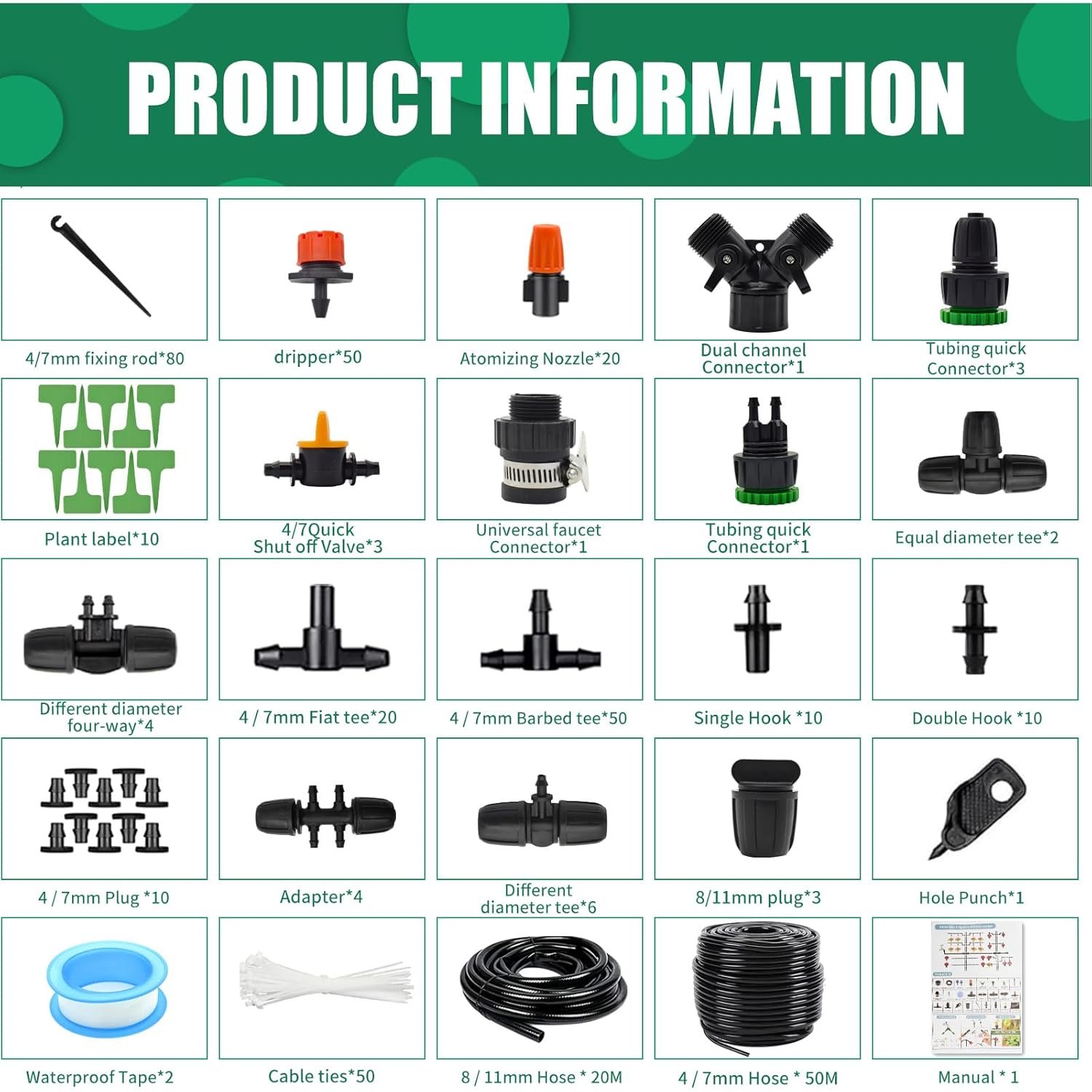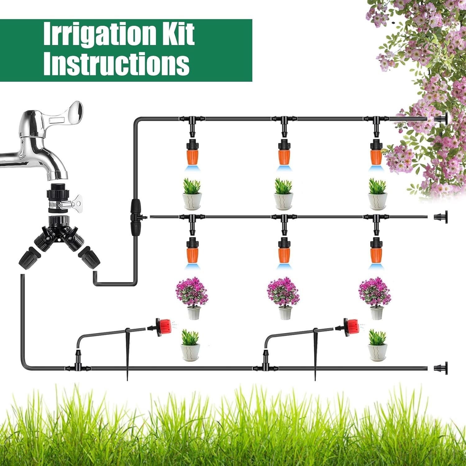 Sistema de riego de jardín, sistema de riego por goteo de 344 piezas, kit de riego por goteo de 50 m + 20 m, rociador de boquilla ajustable para jardines, flores masivas, plantas de patio