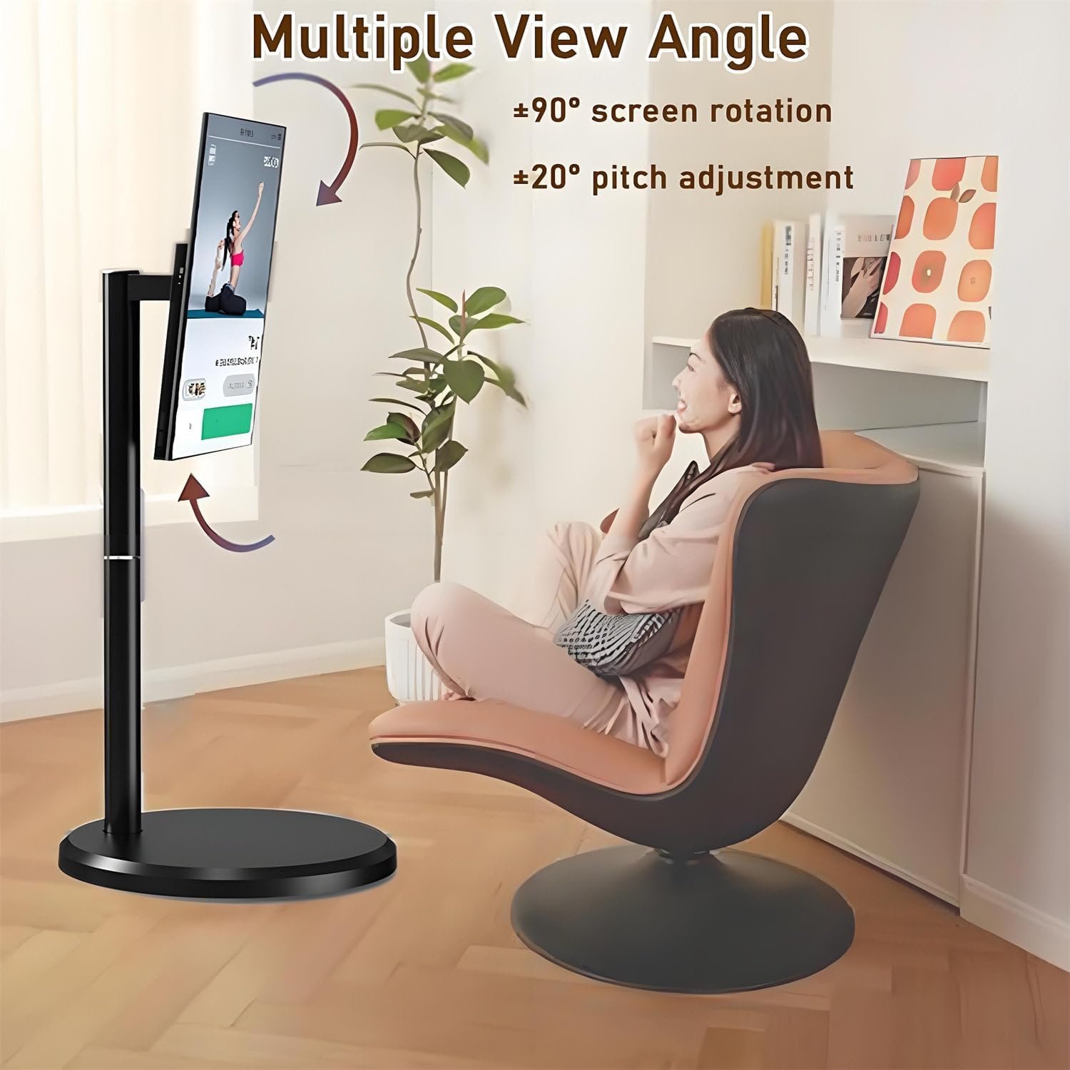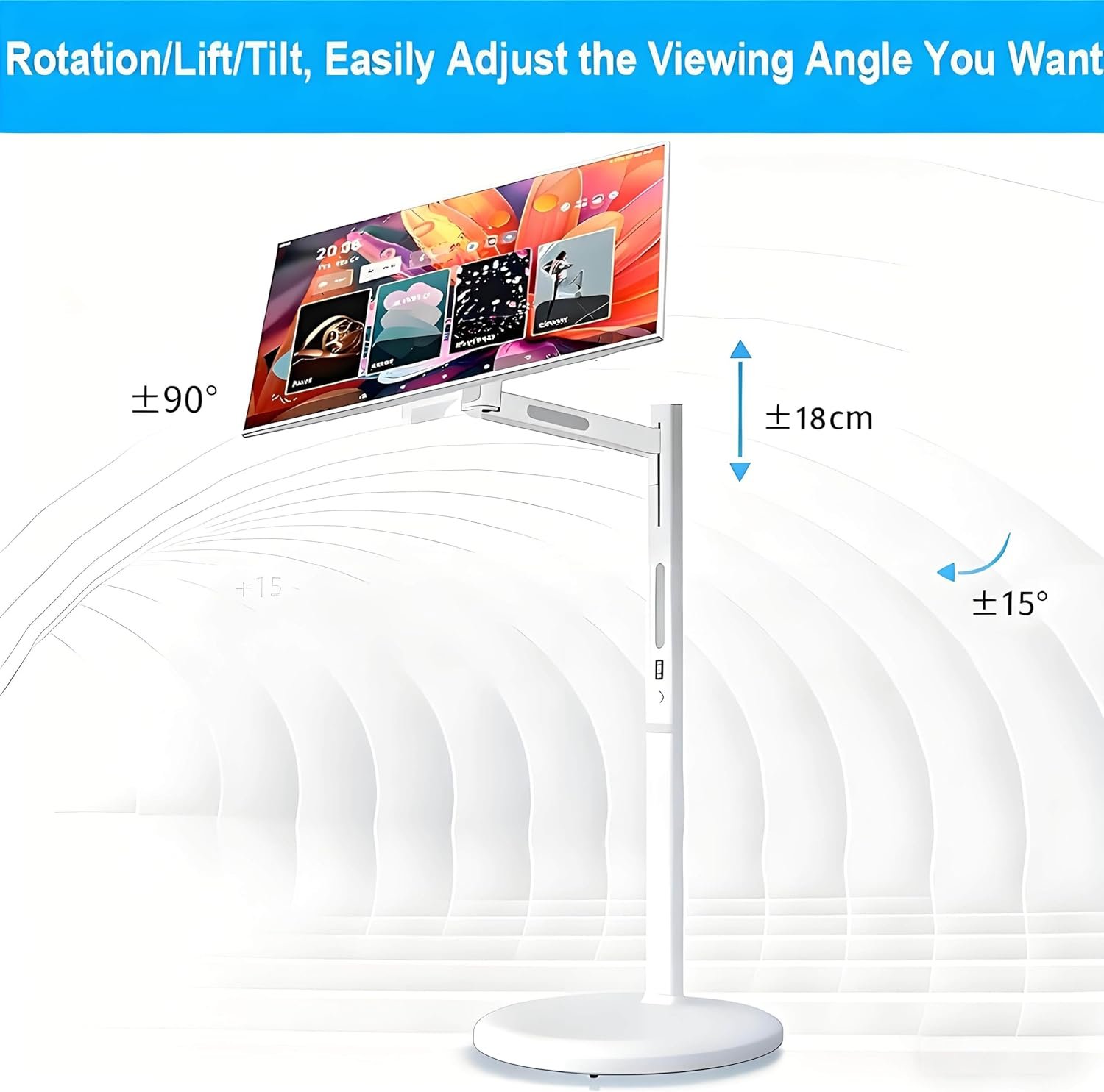 【Altura y ángulo de visión ajustables】Este reproductor multimedia portátil le permite cambiar fácilmente entre los modos vertical y horizontal. Puede ajustar la inclinación horizontal de la pantalla a ±22° y su altura a ±180 mm. El diseño antivuelco garantiza la estabilidad. Ya sea que esté sentado, de pie, acostado o haciendo ejercicio, disfrutará de una comodidad y claridad óptimas.