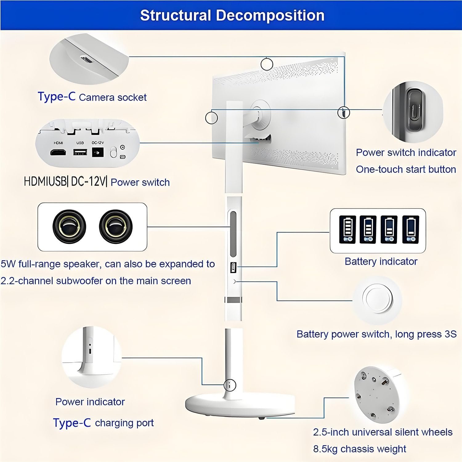 【Monitor inteligente portátil inalámbrico】Disfruta de la libertad de un monitor inalámbrico que se adapta a tu estilo de vida. Este monitor inteligente portátil es perfecto para quienes necesitan una pantalla flexible y de alta calidad para trabajar o entretenerse. Su diseño elegante y funciones avanzadas lo convierten en la solución definitiva para la vida móvil moderna.