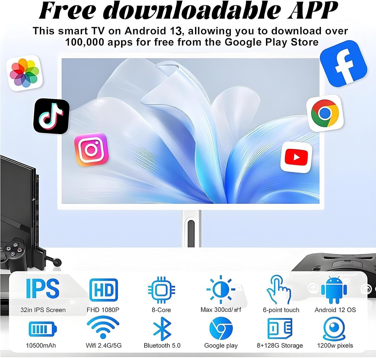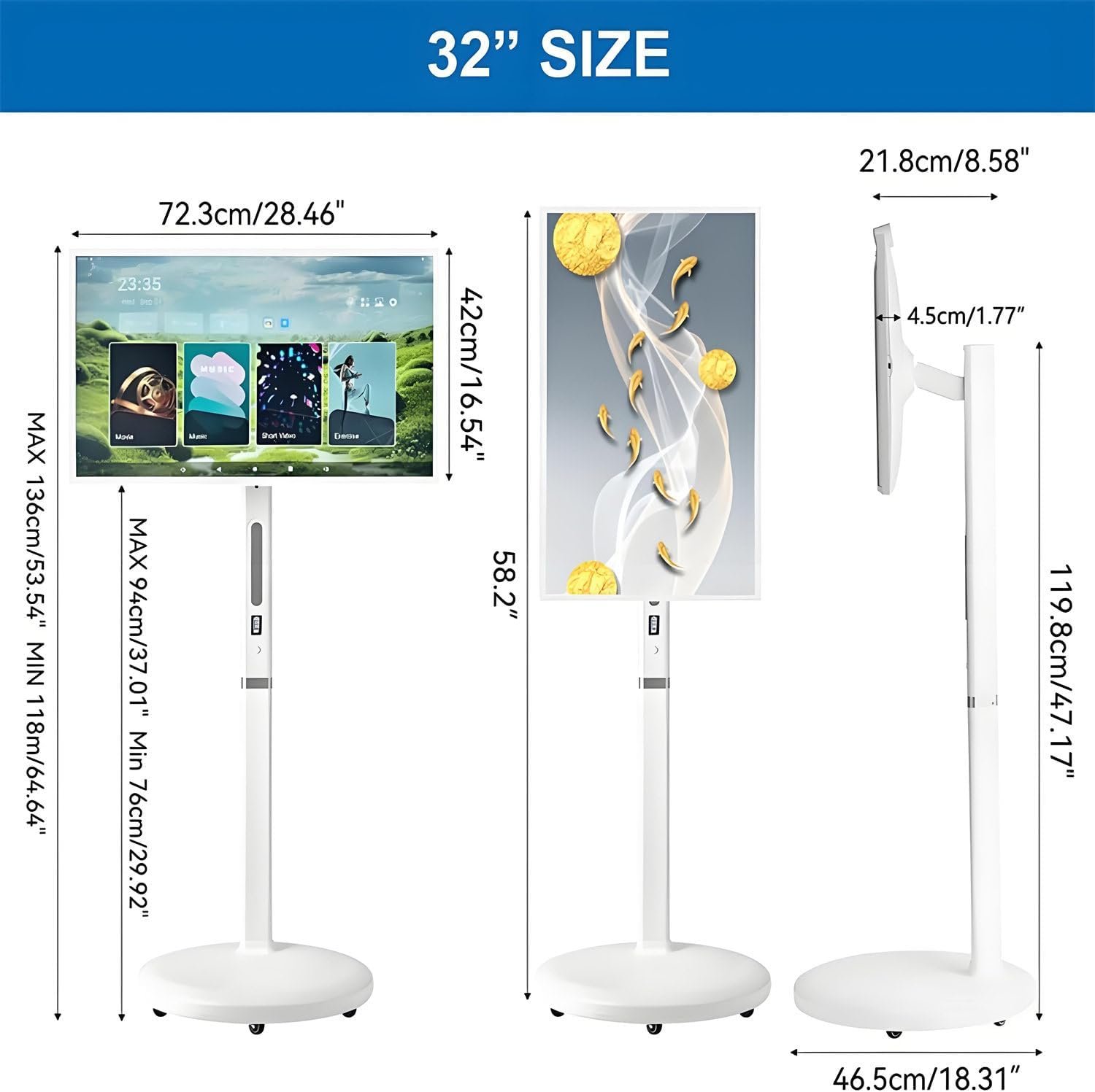 Smart TV portátil, Monitor táctil inteligente, TV con ruedas, TV portátil inalámbrico con control por voz, 8 GB de Ram + 128 GB de almacenamiento de 32 pulgadas