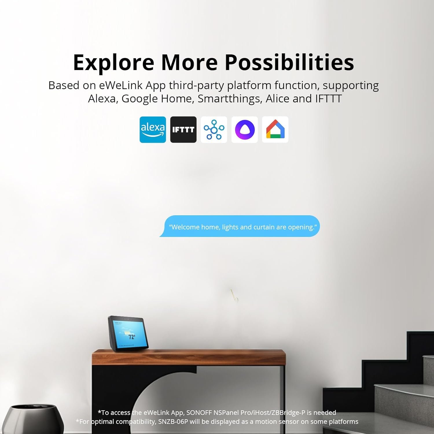 【Detección de presencia】SNZB-06P basado en radar de microondas de 5,8 GHz, puede detectar movimiento o persona estacionaria. Enciende automáticamente las luces cuando te acercas y mantenlas encendidas hasta que te vayas. 【Detección de luz】El detector de luz incorporado garantiza que las luces solo se enciendan cuando se detecta presencia en la oscuridad, lo que le ayuda a ahorrar energía. 【Compatible con Zigbee 3.0】 Admite concentradores Zigbee que usan el protocolo Zigbee 3.0, como SONOFF NSPanel Pro, SONOFF iHost, SONOFF ZB Bridge Pro, SONOFF ZBDongle-E y Echo Plus 2nd… 【Escena inteligente local】 La vinculación de escenas entre dispositivos Zigbee se puede ejecutar normalmente incluso si no hay conexión a Internet. 【Admite múltiples plataformas】 Admite Alexa, Google Home, Smartthings, Alice, IFTTT y Home Assistant.