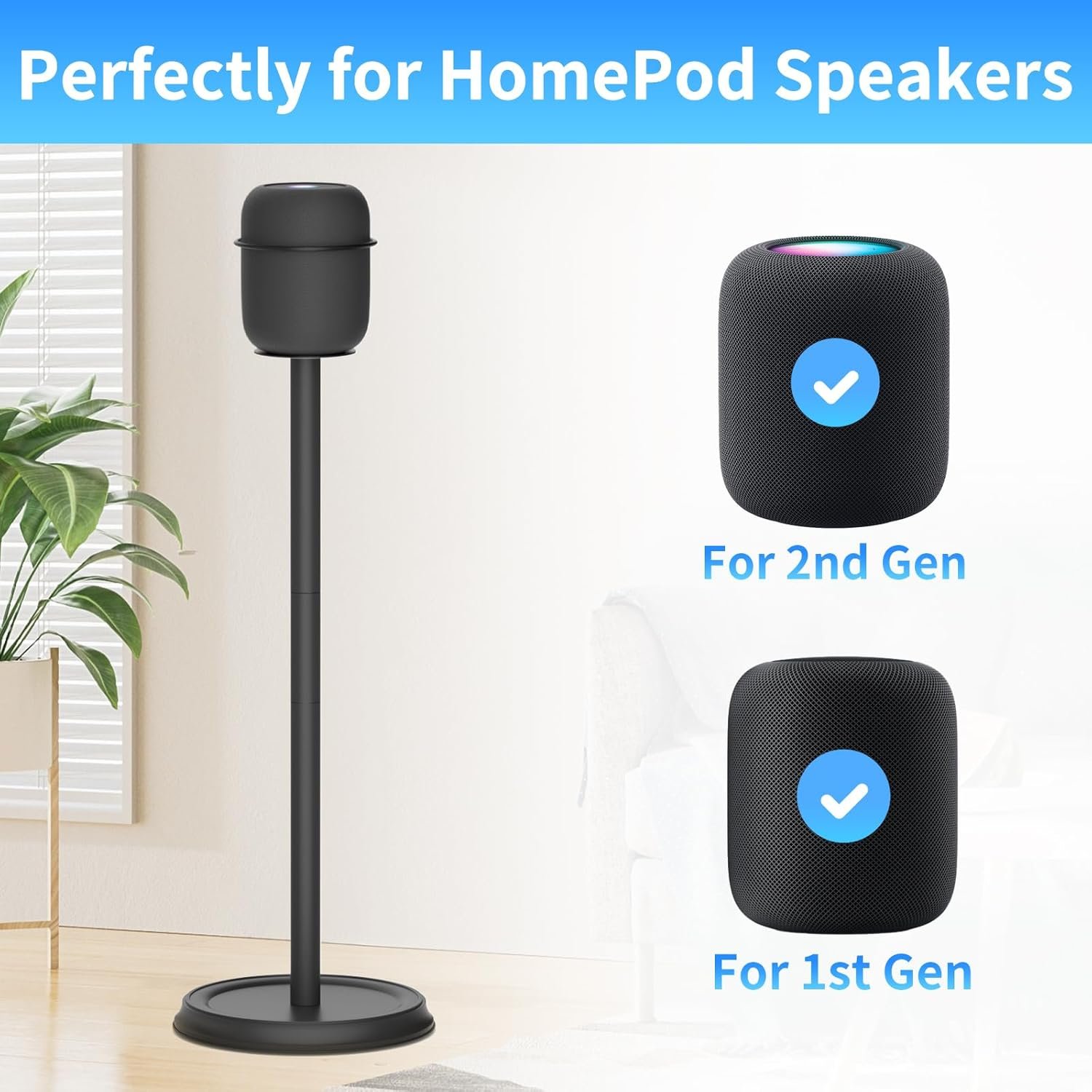 Fotos: Soporte de altavoz resistente compatible con Homepod 1 y Homepod 2, soportes de altavoz de suelo para soporte Homepod de 1.ª y 2.ª generación, fácil de instalar, paquete de 2, negro