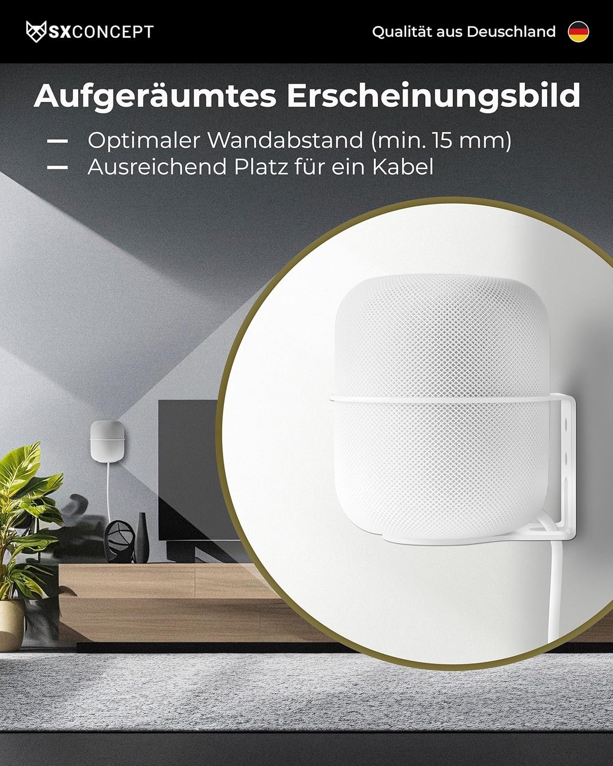 BAJA DISTANCIA DE LA PARED: con nuestro soporte puede montar el Home Pod a una distancia mínima de la pared. Esto le da un aspecto discreto y crea un aspecto ordenado en tu habitación.