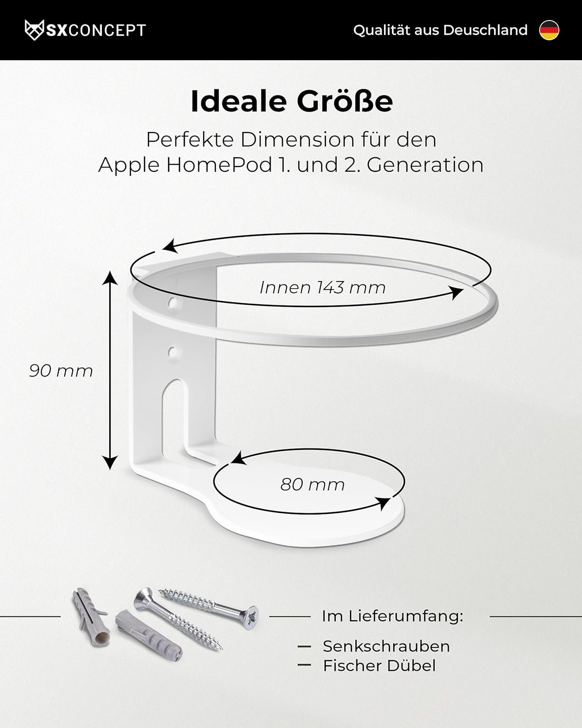 FABRICADO EN ALEMANIA: estamos orgullosos de que nuestro soporte de pared Apple Home Pod y Apple Homepod 2 esté fabricado por nosotros mismos en Alemania bajo los más altos estándares de calidad.