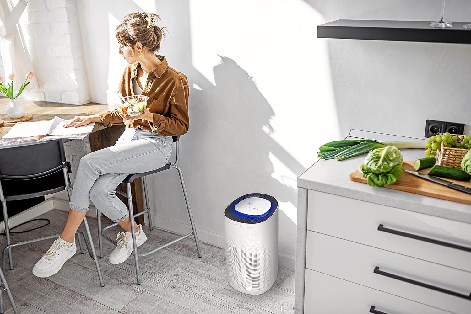 Fotos: SPC ESPIRARE MAX Purificador de aire inteligente Wi-Fi para habitaciones grandes, filtración de 4 fases, filtro True HEPA 13, luz UV, súper silencioso, compatible con asistente de voz