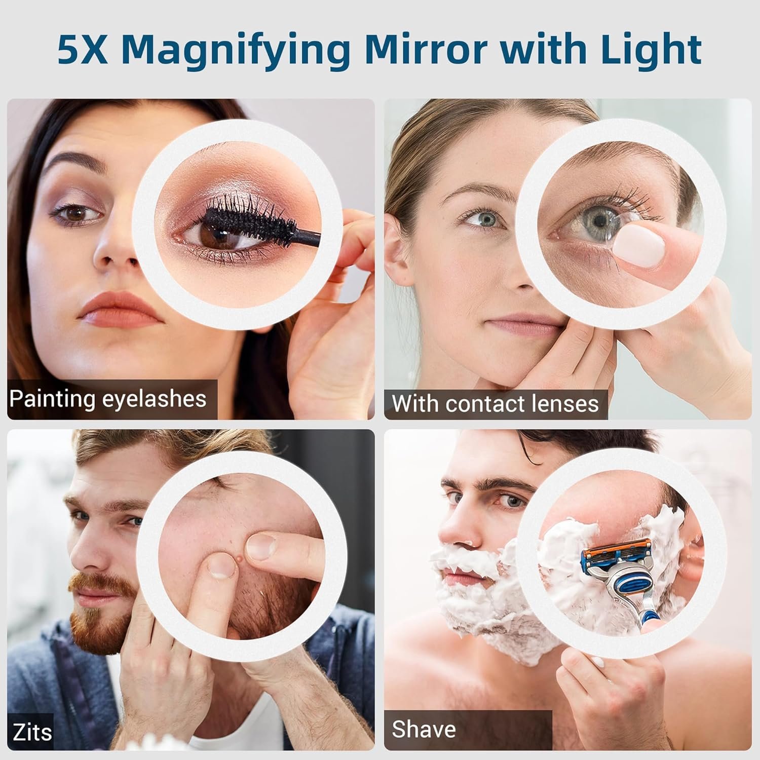 ❤【Espejo de baño con aumento de 5X】 -El espejo de baño STARLEAD tiene un espejo redondo de aumento de 5X incorporado con luz. El espejo con luz de aumento es más conveniente para el maquillaje y afeitado diario, y es más fácil observar los detalles del rostro para crear un maquillaje perfecto. La luz del espejo de aumento cambia con el brillo y el color de la luz principal.