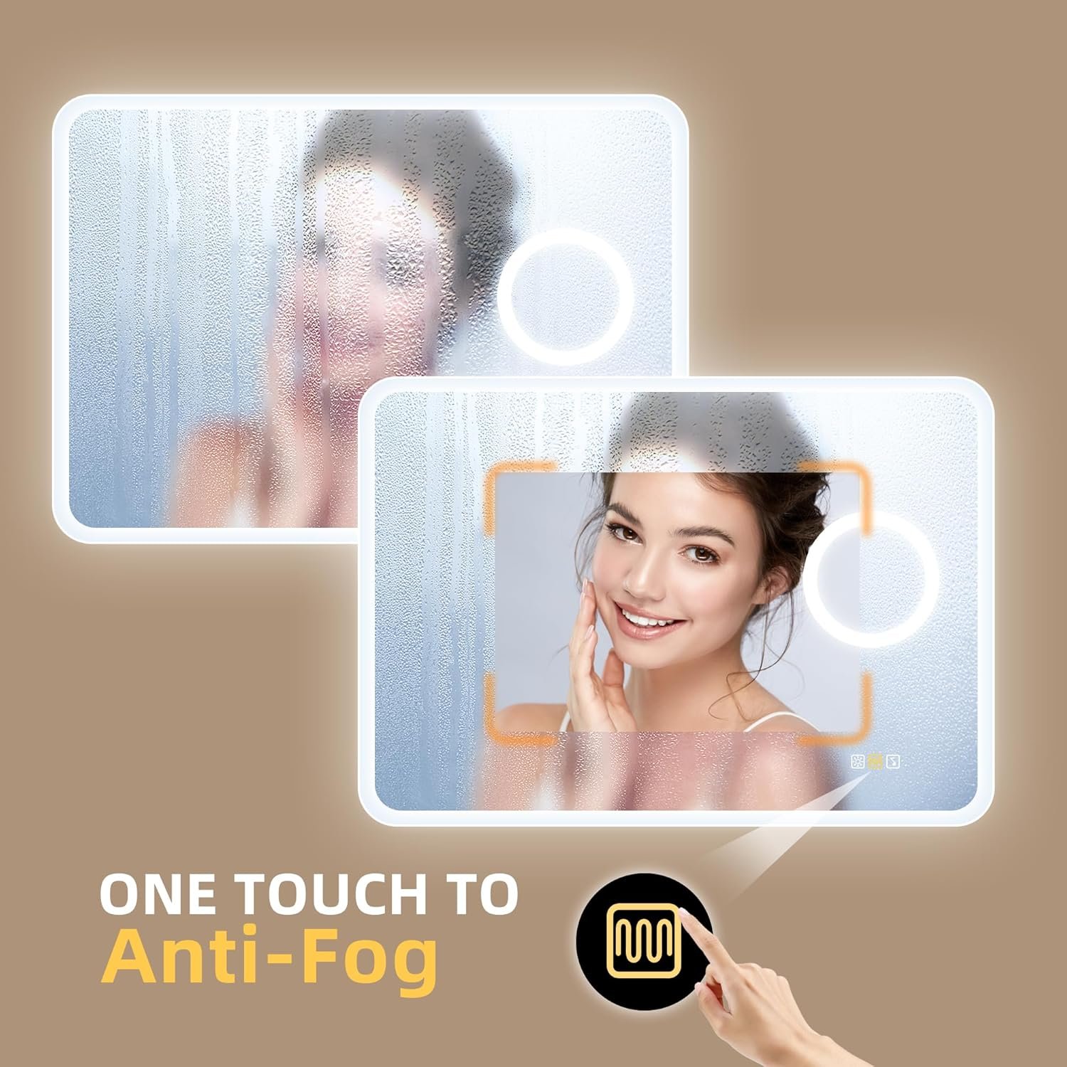 ❤【ANTIFOG Y DEFOGGER】- ¿Todavía te preocupa la niebla en el espejo después de la ducha? Este espejo de baño LED puede liberarte de esta molestia. Encienda la función antivaho antes de ducharse, mantenga siempre un reflejo claro. Encienda el desempañador después de la ducha para eliminar rápidamente el vapor de agua del espejo LED. No necesitas limpiar el espejo iluminado después de la ducha, libera tus manos.