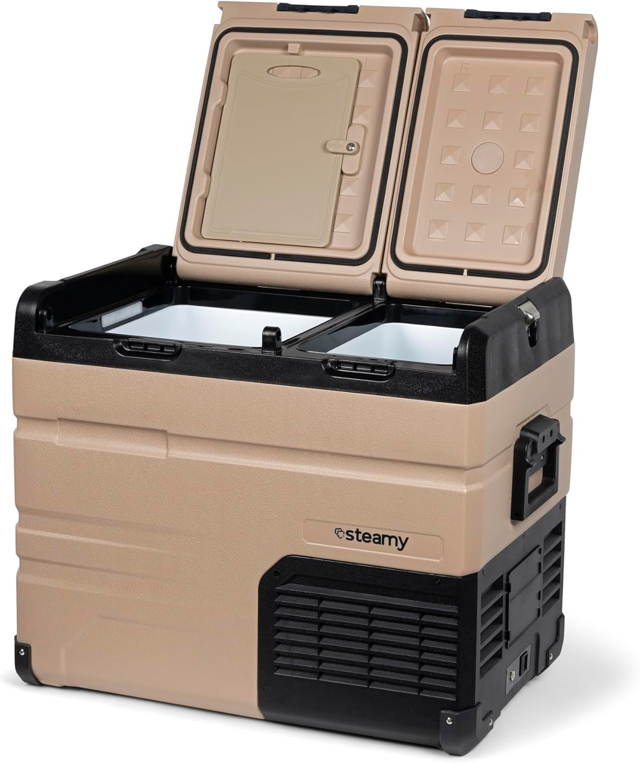 Fotos: Steamy -E Nevera Eléctrica de Compresor Portátil Dual Zone 45, 45 litros, Color Arena, 12 V/230 V, para Congelar y Enfriar de -20 °C a +20 °C, Ideal para Acampar