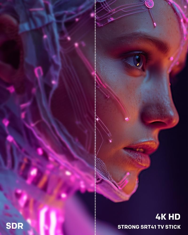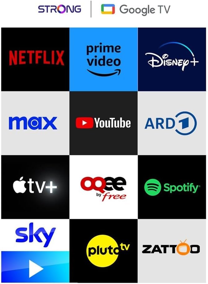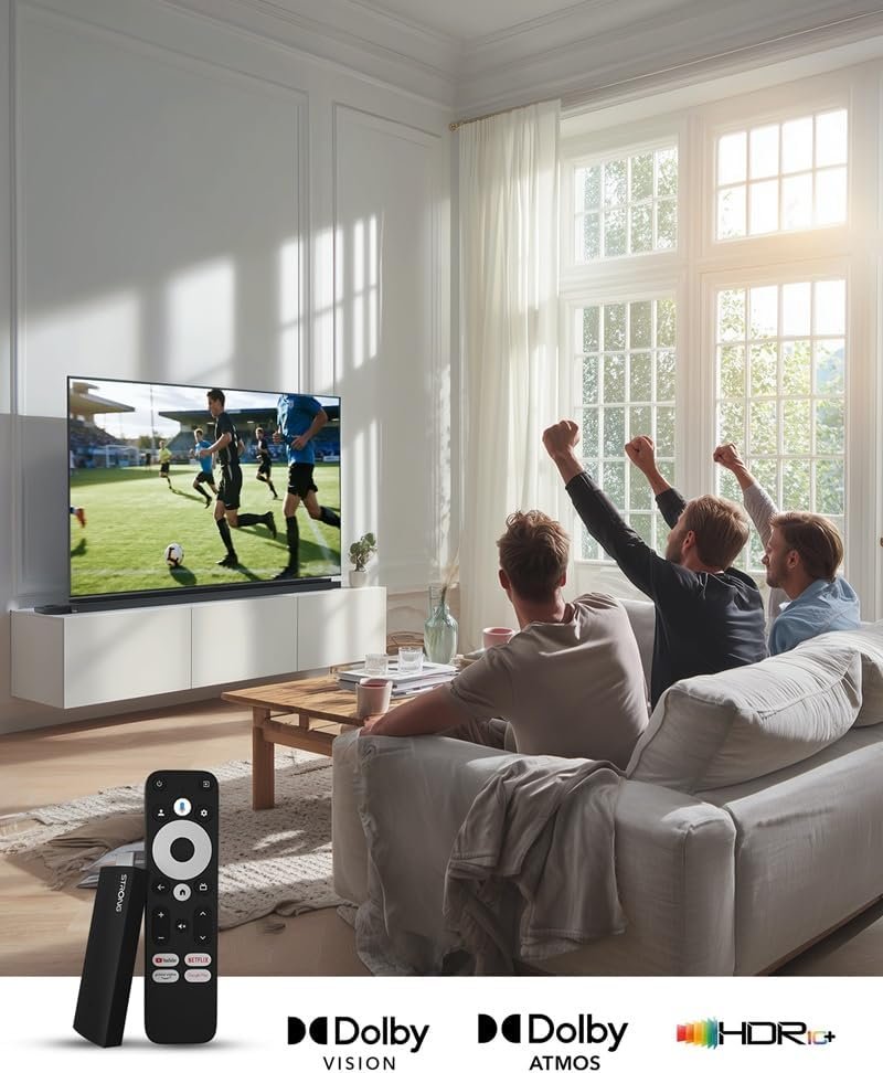 Experiencia cinematográfica: 4K UHD con Dolby Vision y Atmos para mayor contraste y gama de colores, combinado con Dolby Audio para un sonido realista. Disfruta de Netflix, Prime Video y Disney+ como en las películas. Calidad de estudio: el Strong SRT41 TV Stick 4K UHD es el compañero perfecto para tu cine en casa. Con Android 11 y 4K UHD para imágenes nítidas y colores vivos. Chromecast integrado: Transmite contenido desde tu móvil, tableta u ordenador a tu televisor. El Asistente de Google encuentra programas y responde preguntas mediante comandos de voz. Experiencia de transmisión definitiva: Google TV Stick con Wi-Fi 5 y Android 11 mejora tu entretenimiento. Transfiere contenido del móvil al televisor y descarga aplicaciones. Memoria optimizada: carga rápida y multitarea fluida y sin retrasos. 2 GB+8 GB de almacenamiento para tus aplicaciones y contenidos favoritos. 40 años de innovación: Strong redefine el entretenimiento durante 40 años. Este TV Stick ofrece transmisión premium, configuración sencilla y rendimiento confiable.