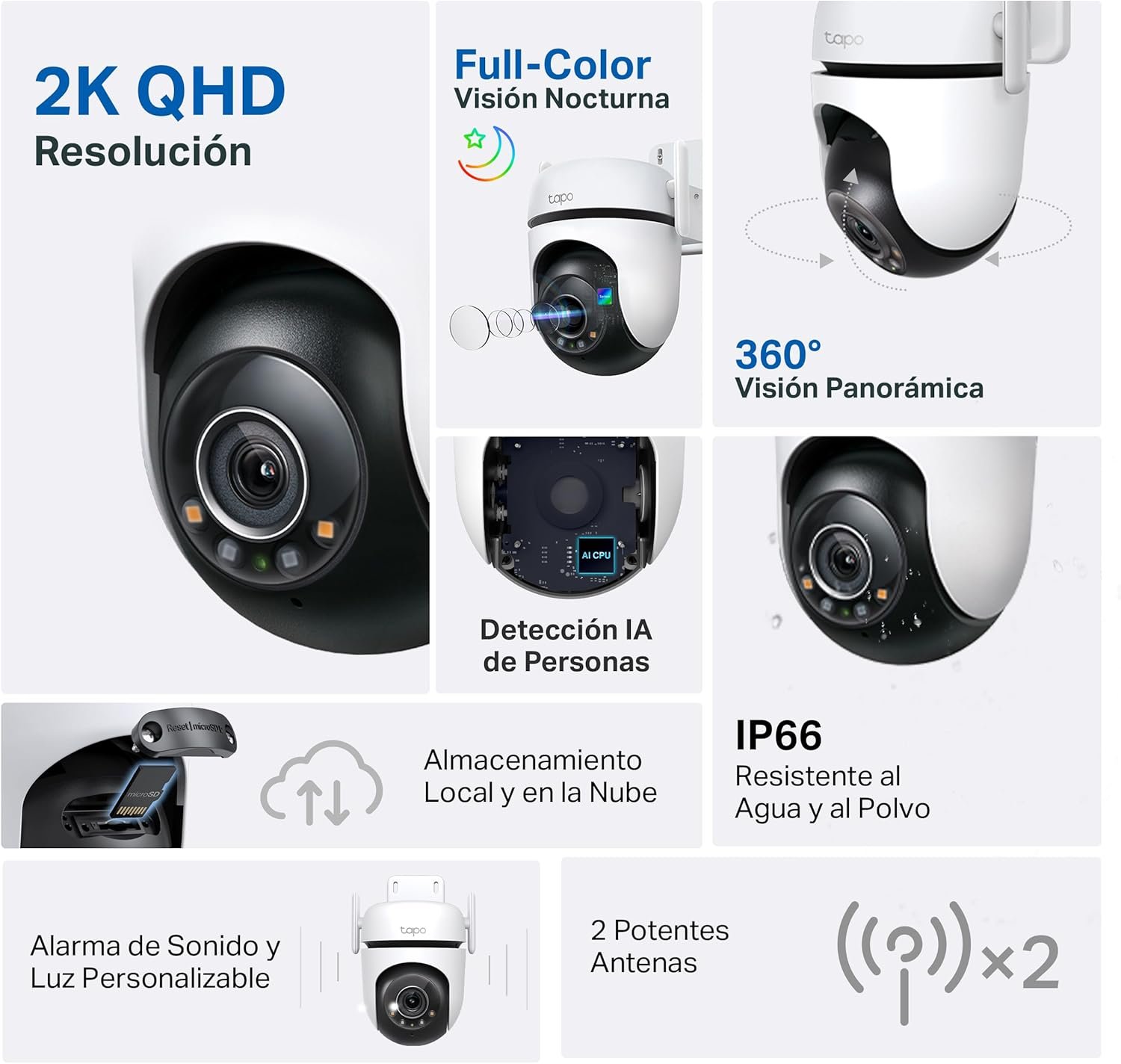 Tapo C520WS – Cámara de Vigilancia Wi-Fi para Exteriores 360°, Resolución 2K QHD, Visión Nocturna en Color Starlight, Detección Múltiple de IA, Seguimiento de Movimiento, IP66
