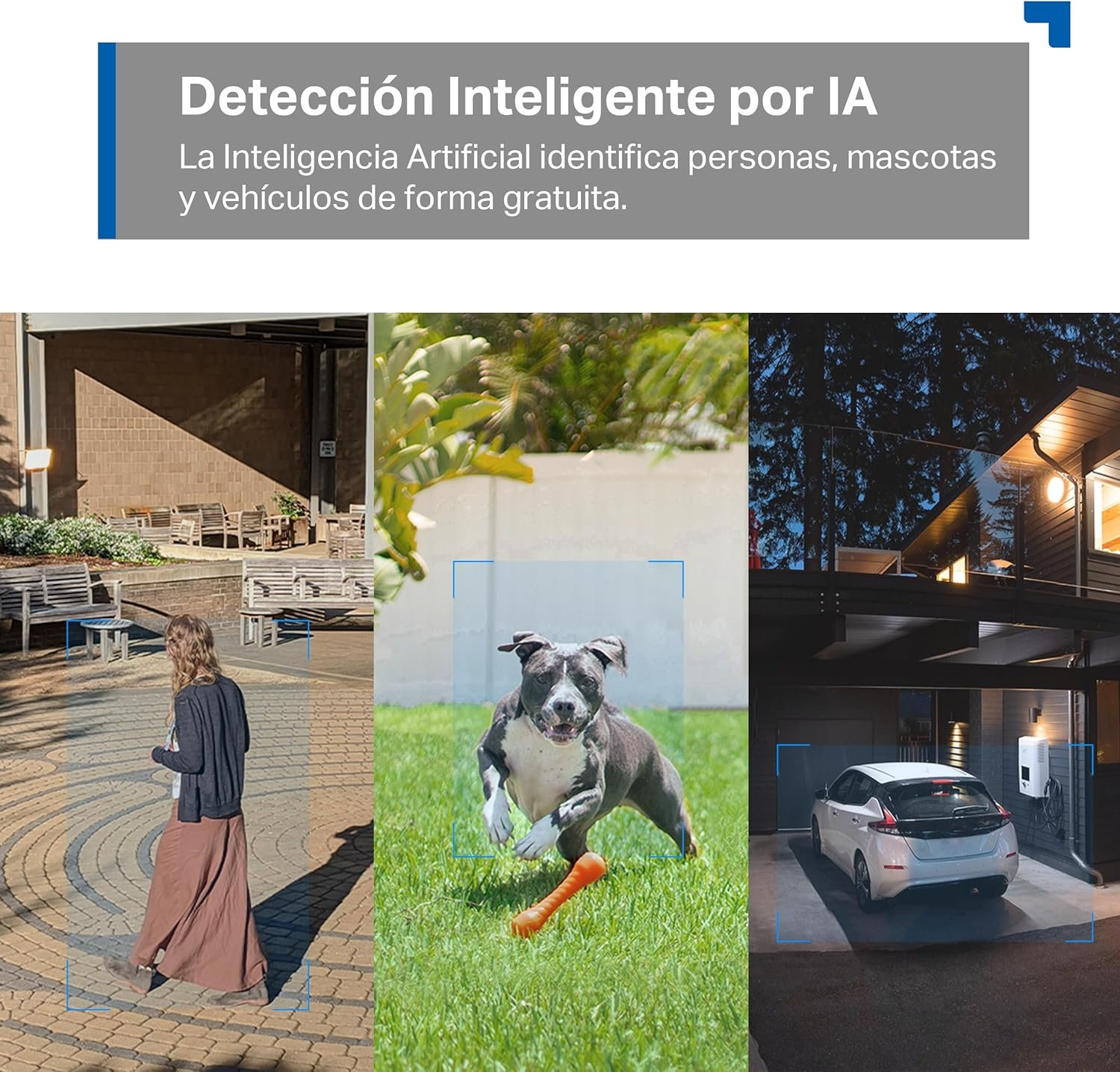 Detección gratuita de personas, mascotas y vehículos: la IA inteligente identifica personas, mascotas y vehículos y notifica a los usuarios según sea necesario.
