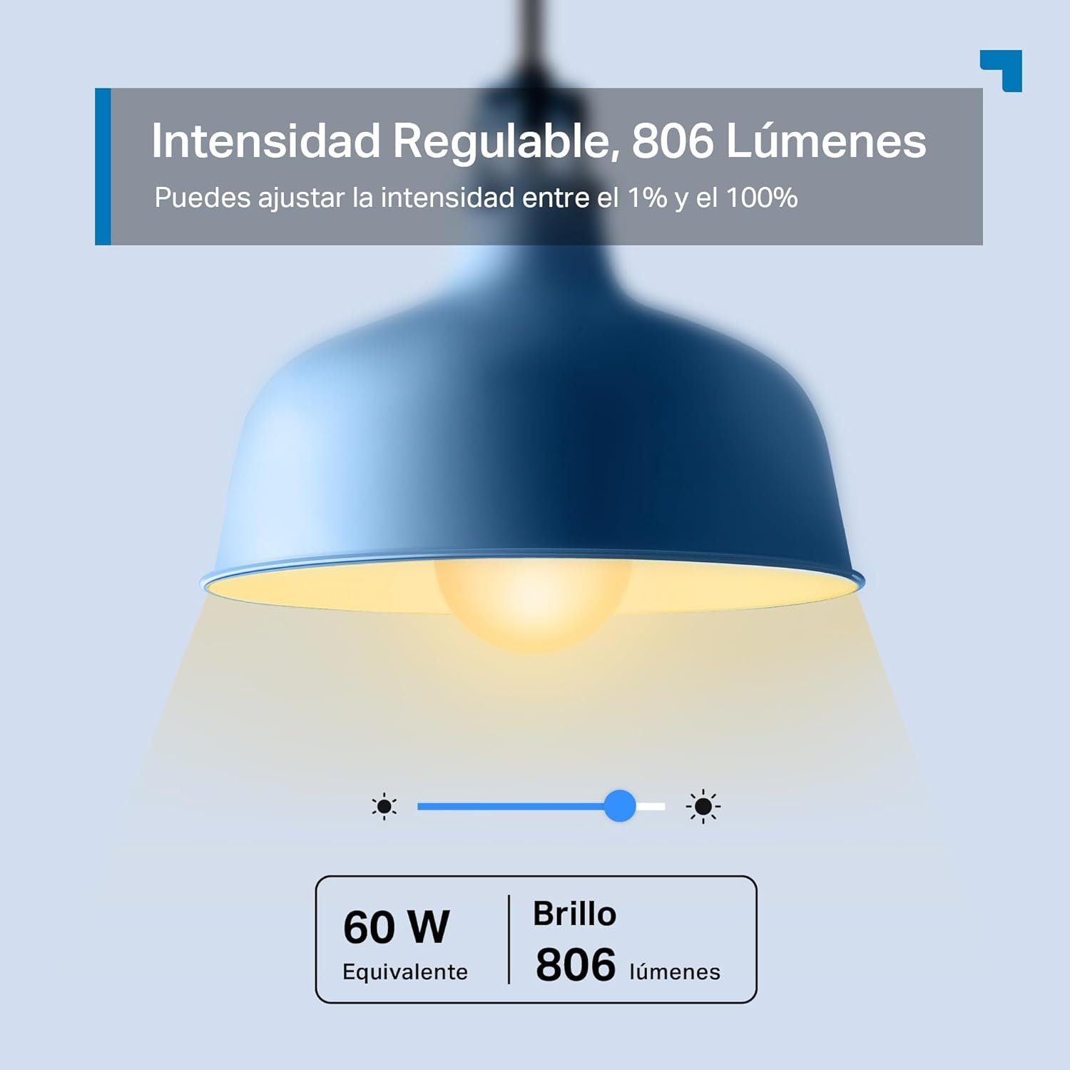 Equivalente a una bombilla de 60W tradicional pero con intensidad regulable del 1% al 100%.