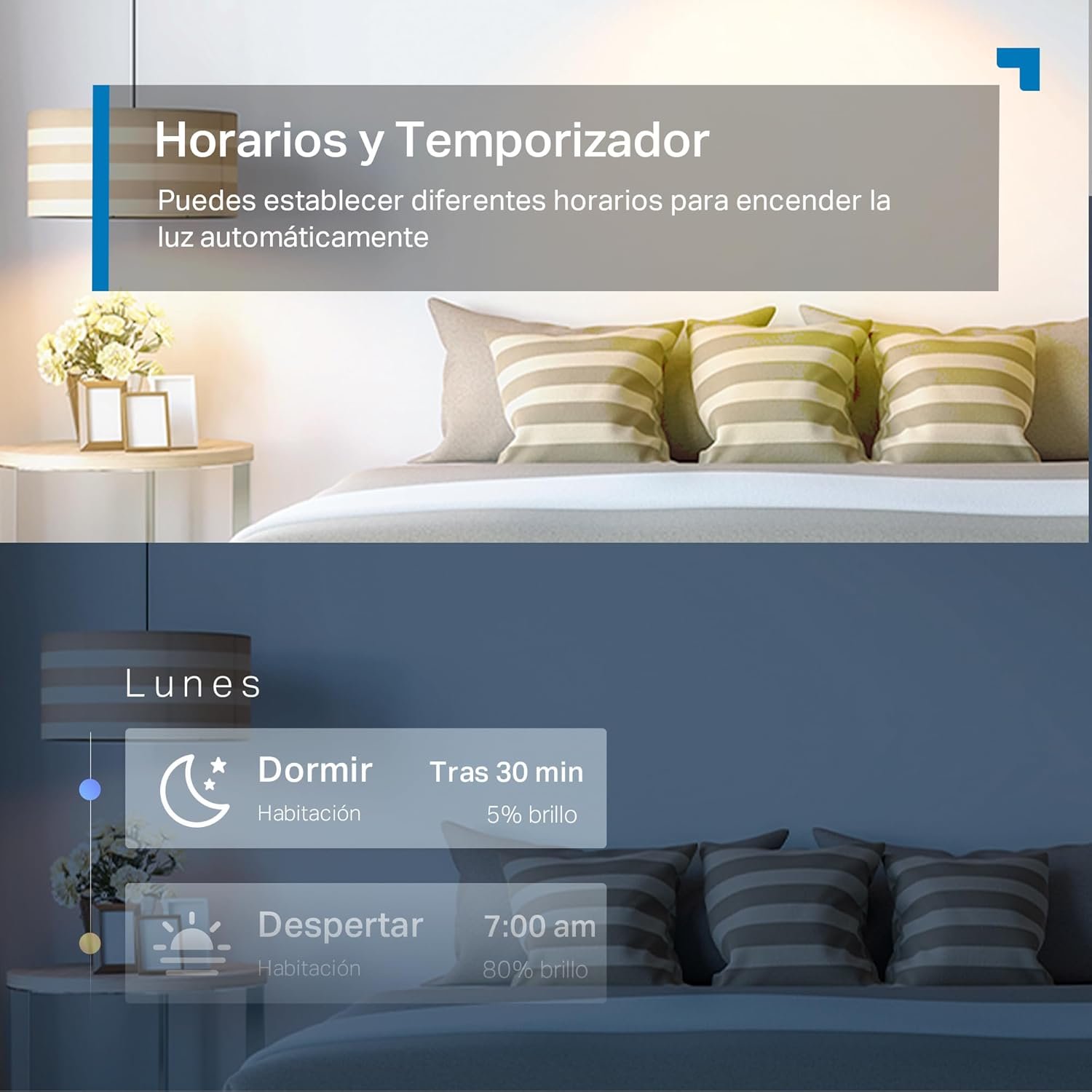 Crea horarios y temporizadores para encender, apagar o cambiar la intensidad de la bombilla LED.