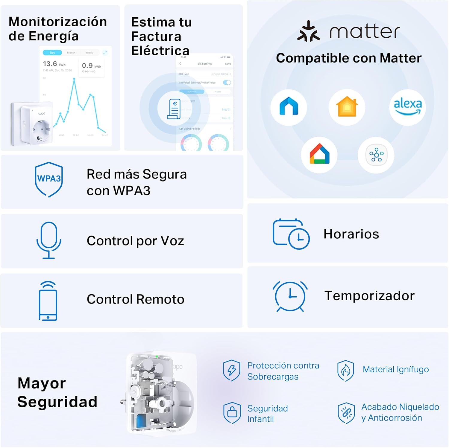 Tapo P110M Mini Enchufe Inteligente Wi-Fi (con Monitoreo de Energía), Programación Encendido/Apagado, Ahorro de Energía, Compatible con Alexa y Google Home